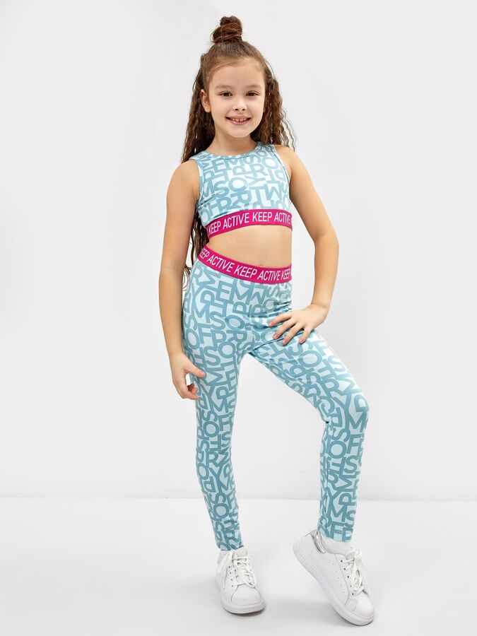 КОМПЛЕКТ ДЛЯ ДЕВОЧЕК (ТОП, ЛЕГГИНСЫ) 197726 197726 буквы на нежно -голубом 1050 Mark Formelle