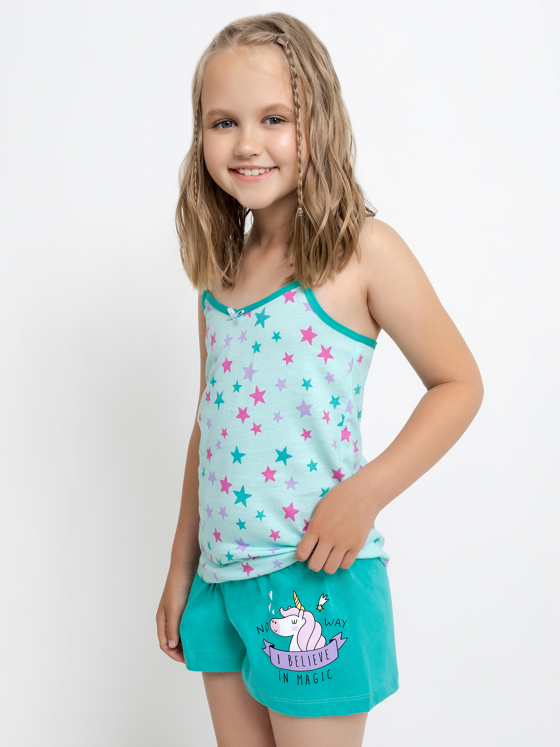 КОМПЛЕКТ ДЛЯ ДЕВОЧЕК (ТОП, ШОРТЫ) 567729 567729 разноцветные звезды +ментол 60636 Mark Formelle