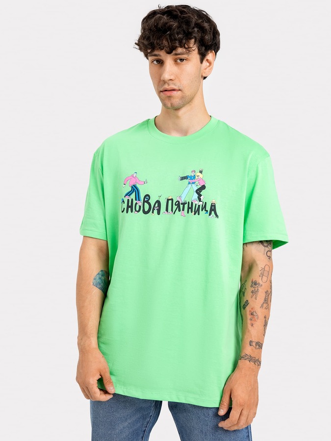 ФУТБОЛКА МУЖСКАЯ 111742 111742 я.салатовый +печать 75369 Mark Formelle