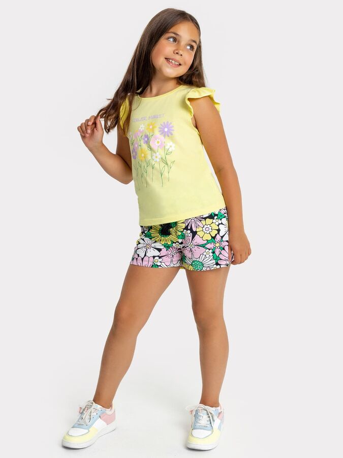 КОМПЛЕКТ ДЛЯ ДЕВОЧЕК (ФУТБОЛКА, ШОРТЫ) 197720 197720 св.лимонный +цветы на черном 18114 Mark Formelle