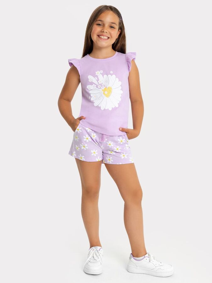 КОМПЛЕКТ ДЛЯ ДЕВОЧЕК (ФУТБОЛКА, ШОРТЫ) 197720 197720 лиловый +ромашки на лиловом 18113 Mark Formelle