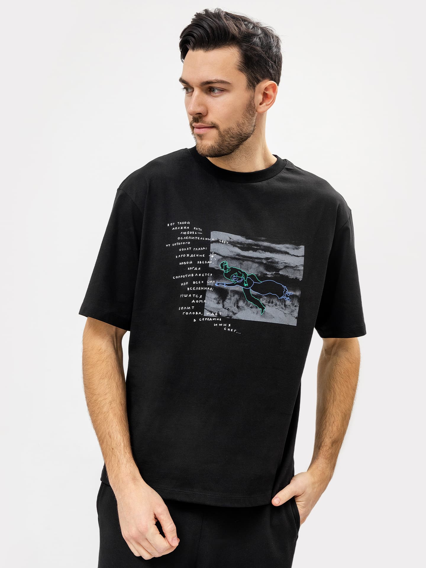 ФУТБОЛКА МУЖСКАЯ 111772 111772 черный +печать 75369 Mark Formelle