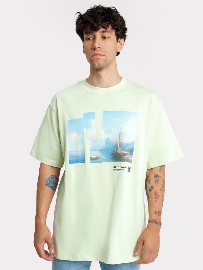 ФУТБОЛКА МУЖСКАЯ 111846 111846 зеленая пастель +печать 86122 Mark Formelle