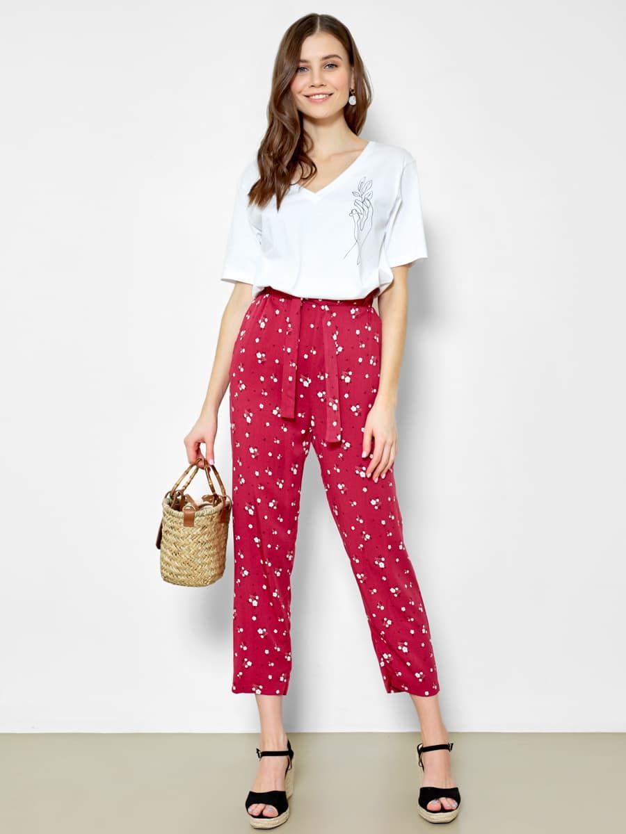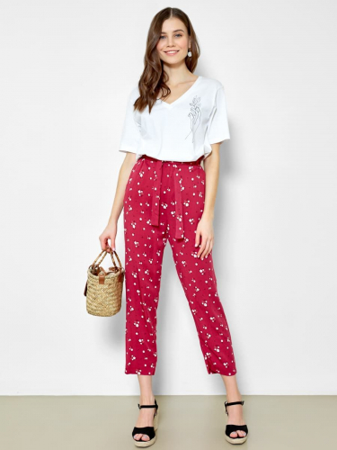 БРЮКИ ЖЕНСКИЕ 182297 182297 цветочки на бордовом 1050 Mark Formelle