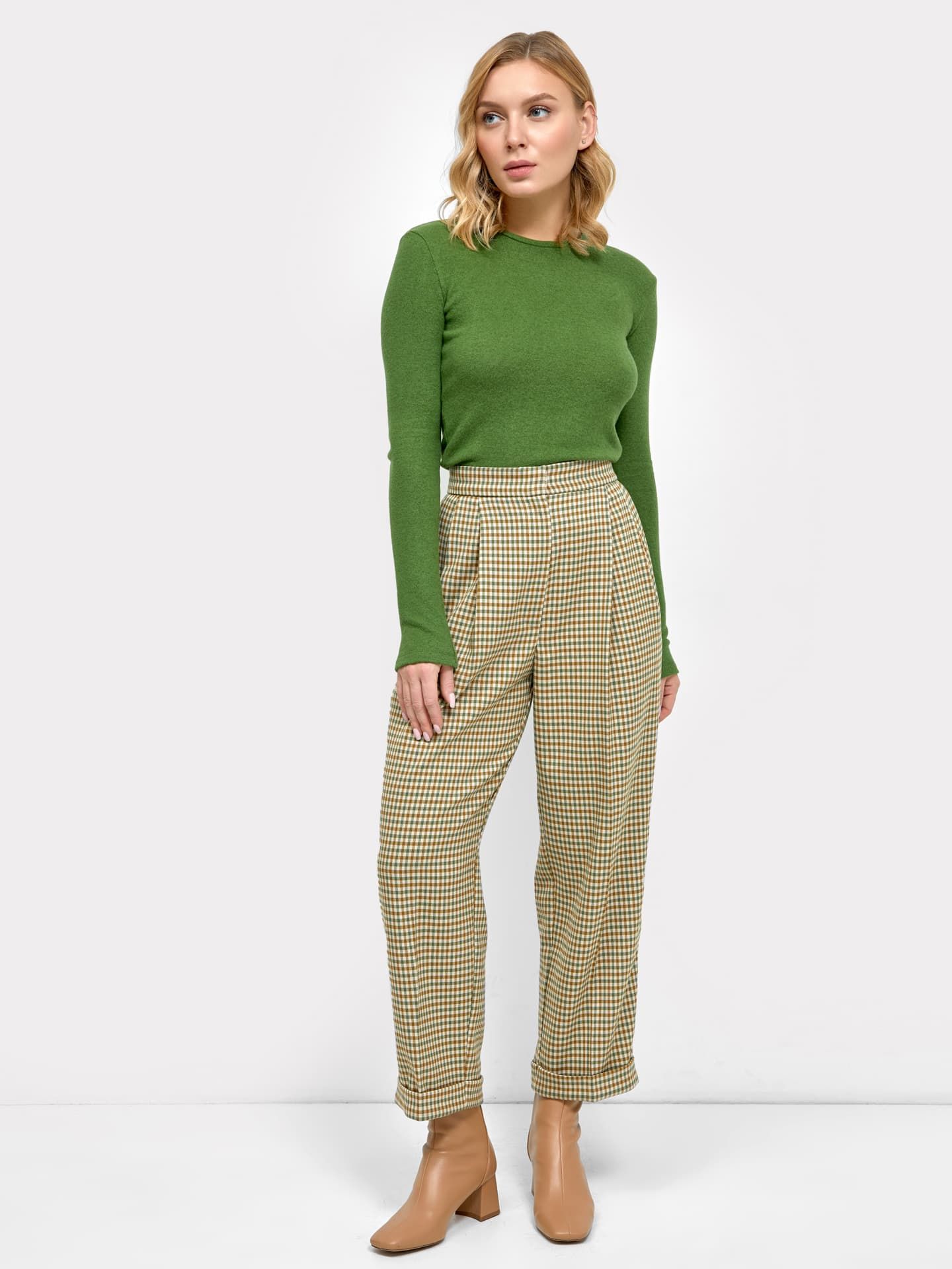 БРЮКИ ЖЕНСКИЕ 182453 22/20846П-9 182453 оранжево -зеленая клетка 1050 Mark Formelle
