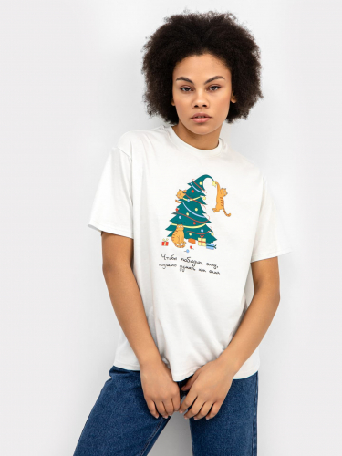 ФУТБОЛКА ЖЕНСКАЯ 112678 112678 св.молочный +печать 18113 Mark Formelle