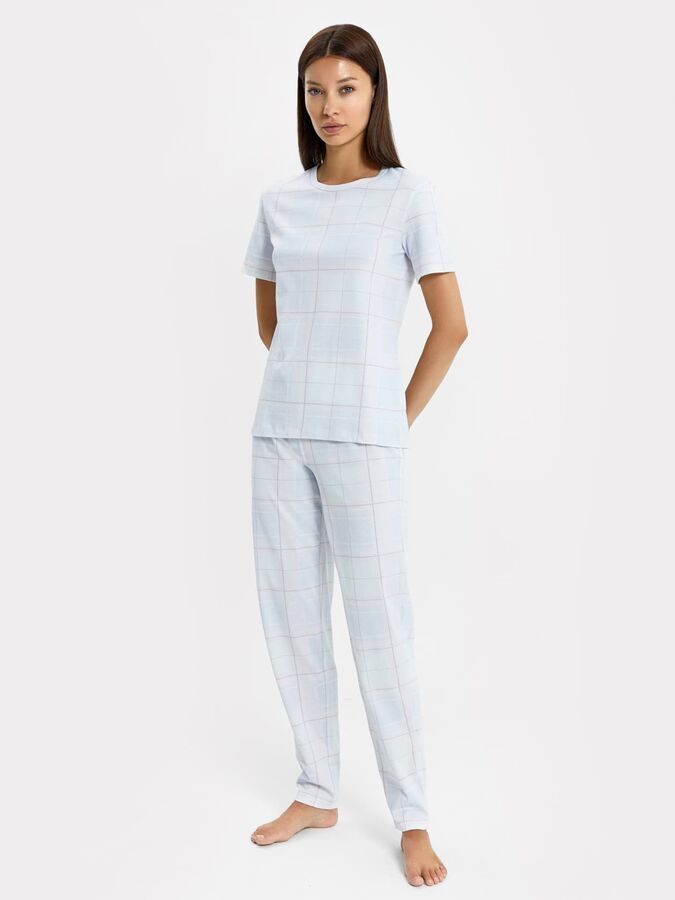 КОМПЛЕКТ ЖЕНСКИЙ (ФУТБОЛКА, БРЮКИ) 592369 592369 голубая клетка 1050 Mark Formelle