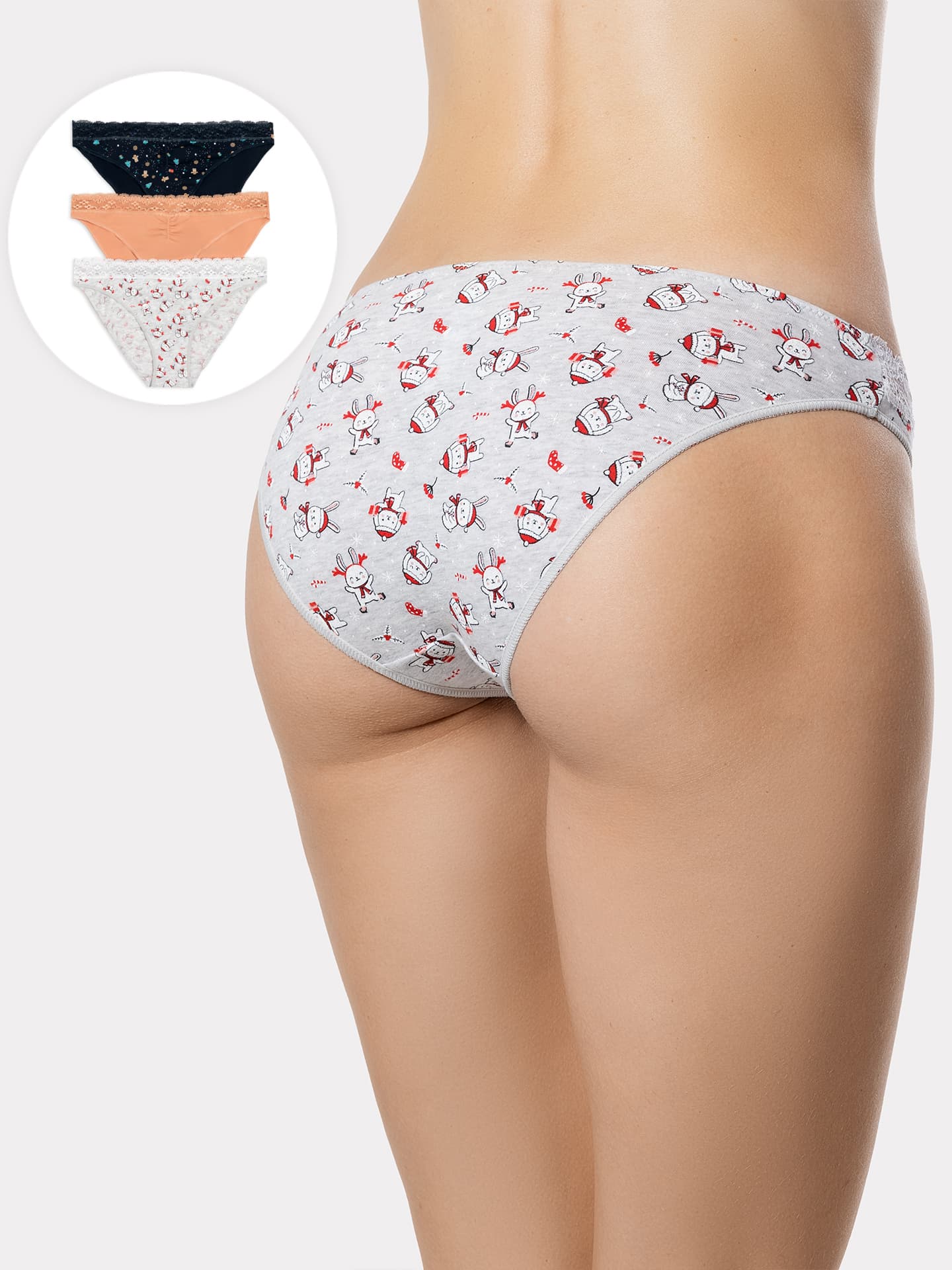 ТРУСЫ ЖЕНСКИЕ (3ШТ.) 412344-3 22/55.8-20513Ц-16 412344-3 новогодние зайки на сером меланже 1050 Mark Formelle