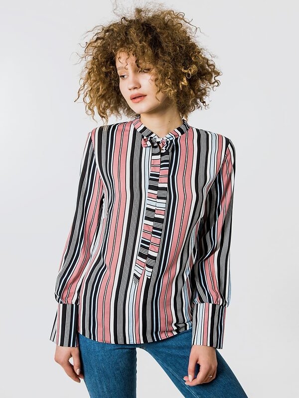 #109074 MARK FORMELLE Блузка полоска коричневая-голубая-черная