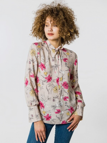 #103884 MARK FORMELLE Блузка цветы на бежевом