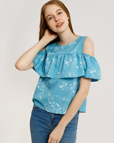 #109810 MARK FORMELLE Блузка цветы на голубом