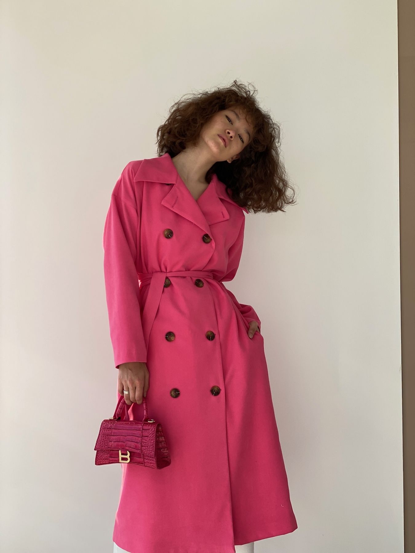 6082 Тренч в стиле "оверсайз" ярко-розовый