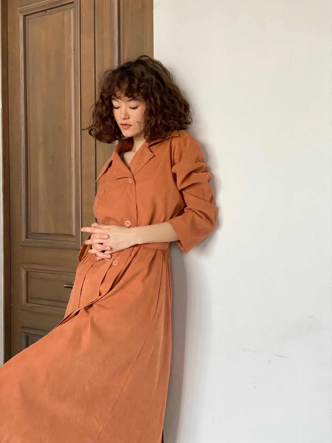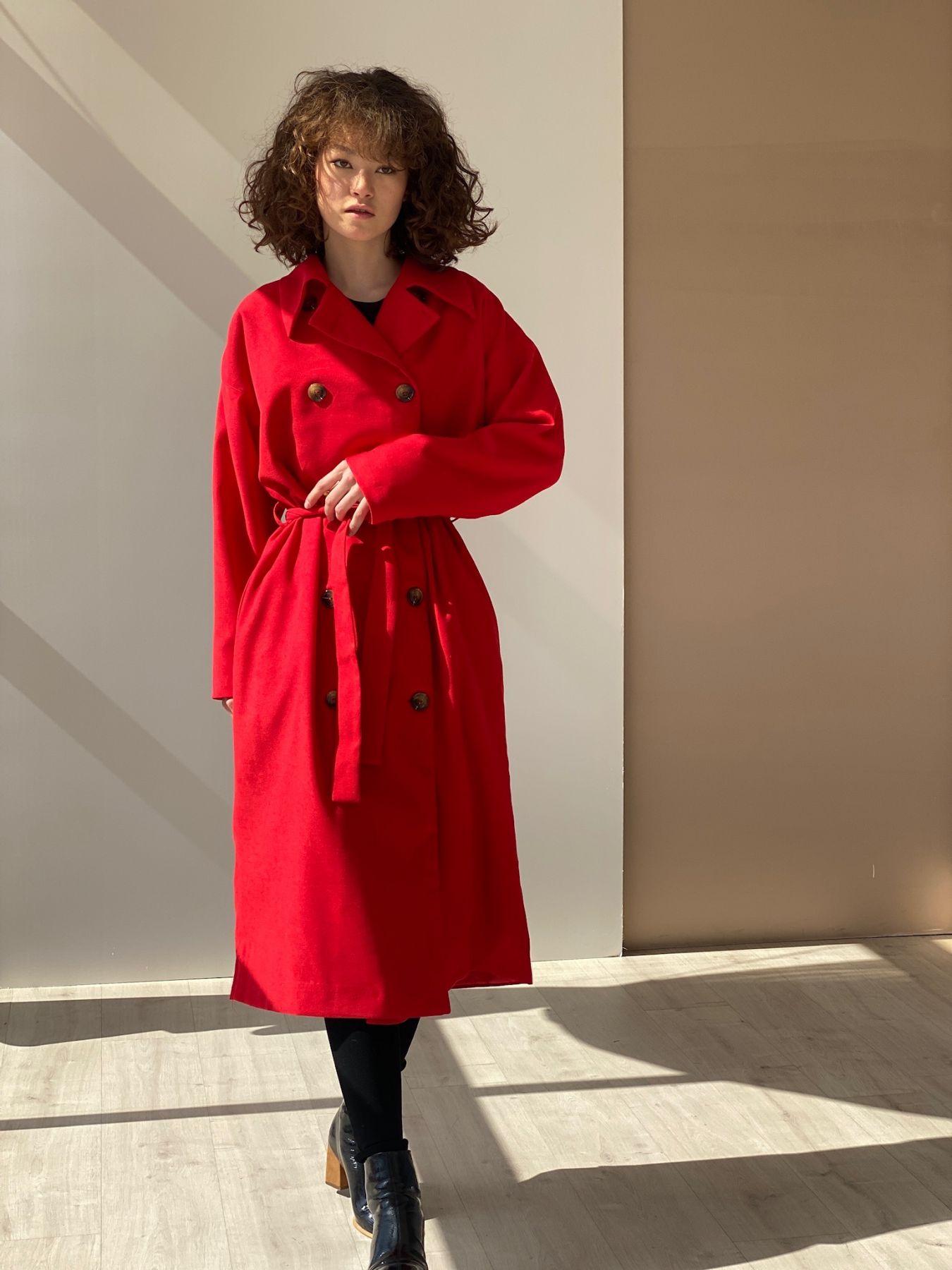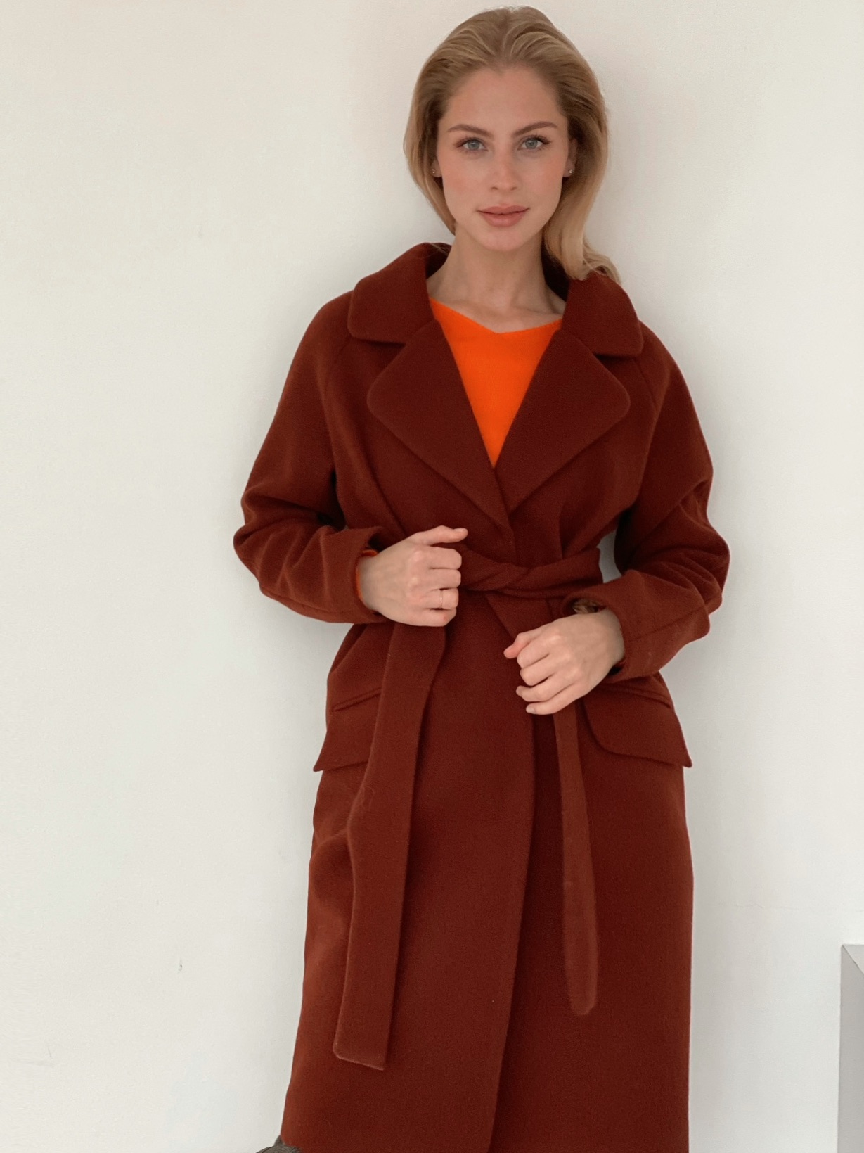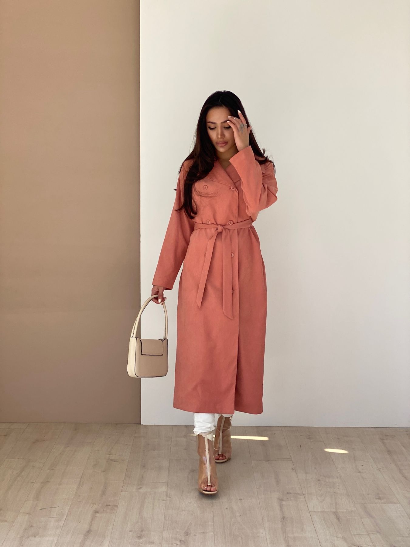 3853 Тренч лососевый в стиле "оверсайз" из нежного материала с подкладом