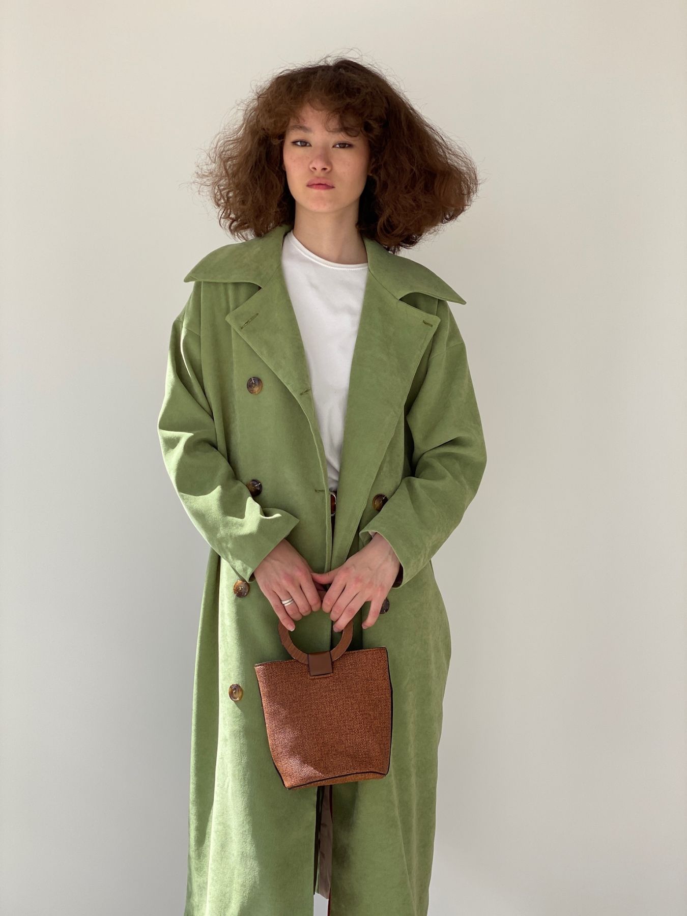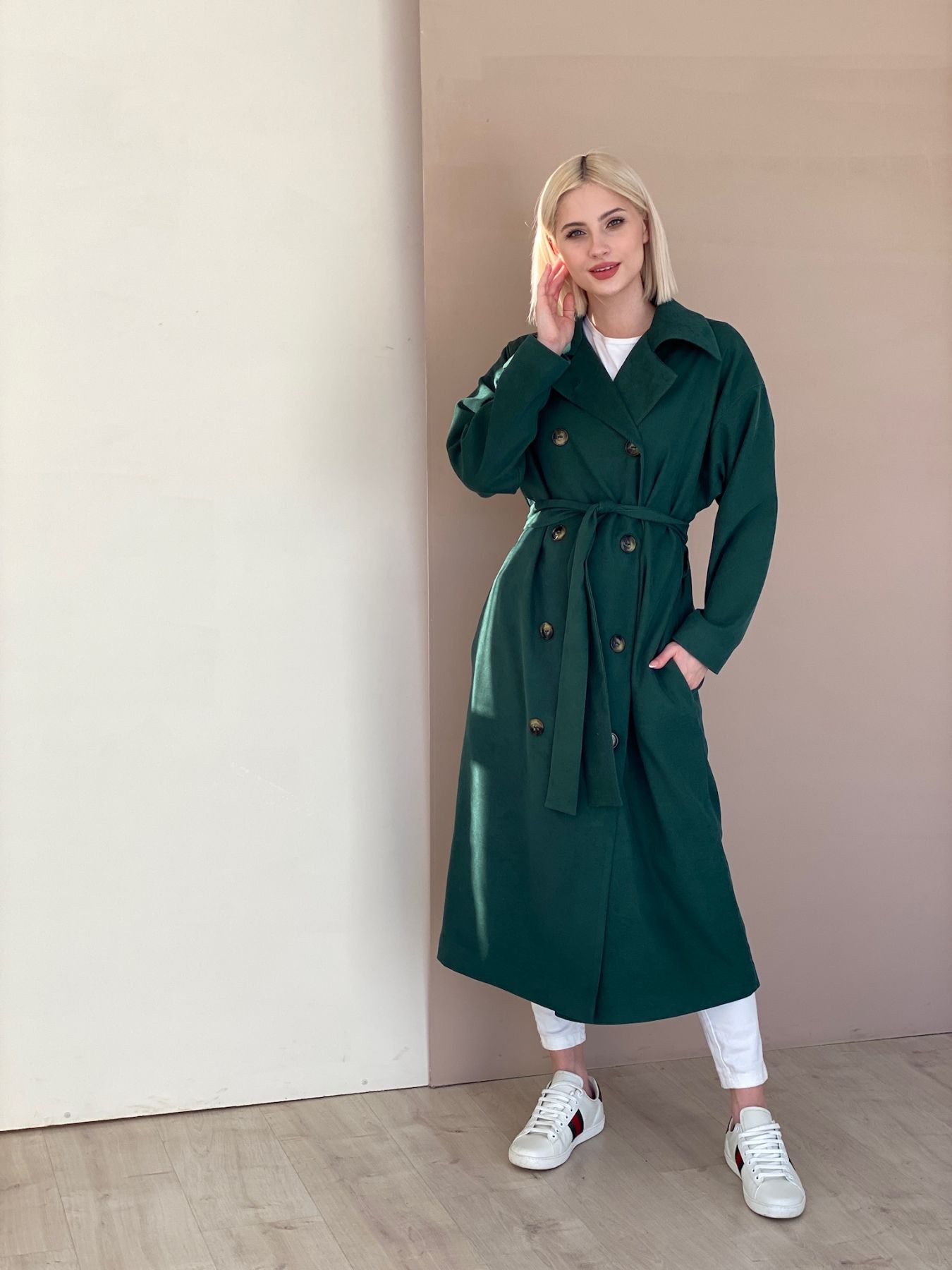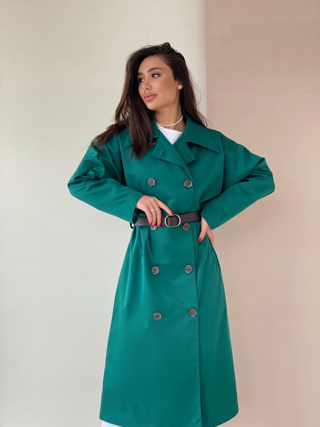 6040 Тренч изумрудный в стиле "оверсайз" из хлопка с подкладом