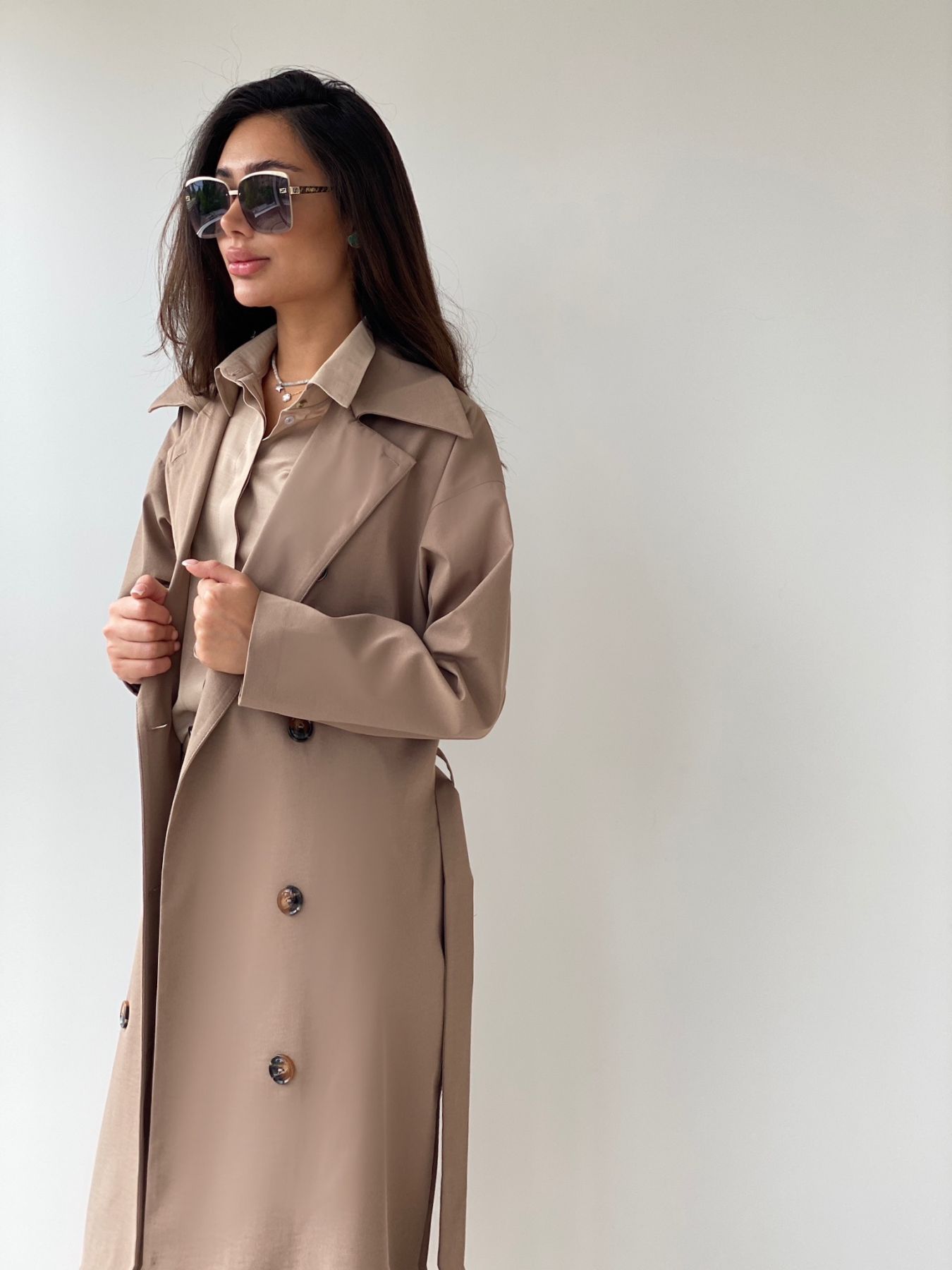 3852 Тренч песочного цвета в стиле "оверсайз" из нежного материала с подкладом