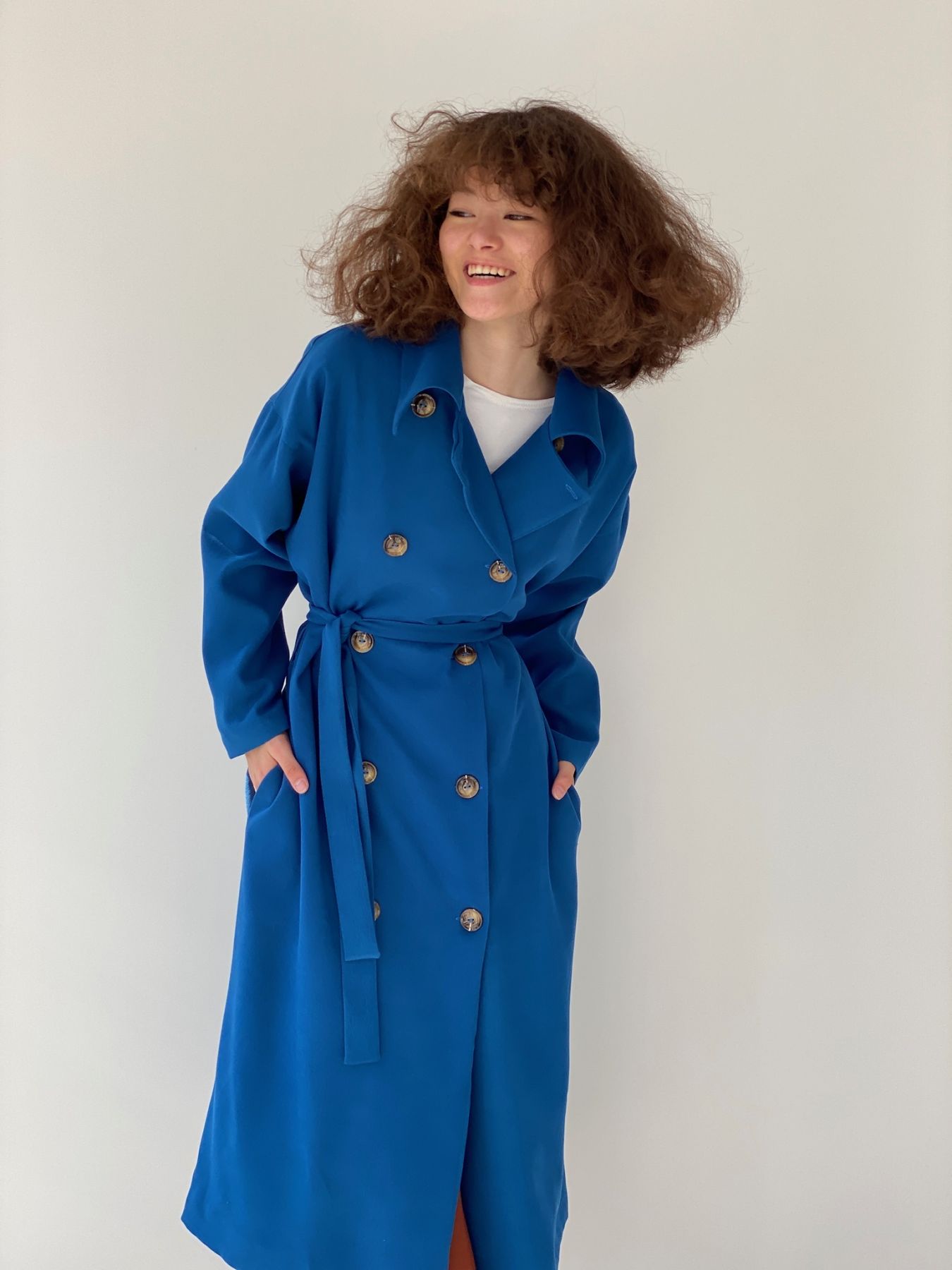 6097 Тренч в стиле "оверсайз" тёмно-голубой