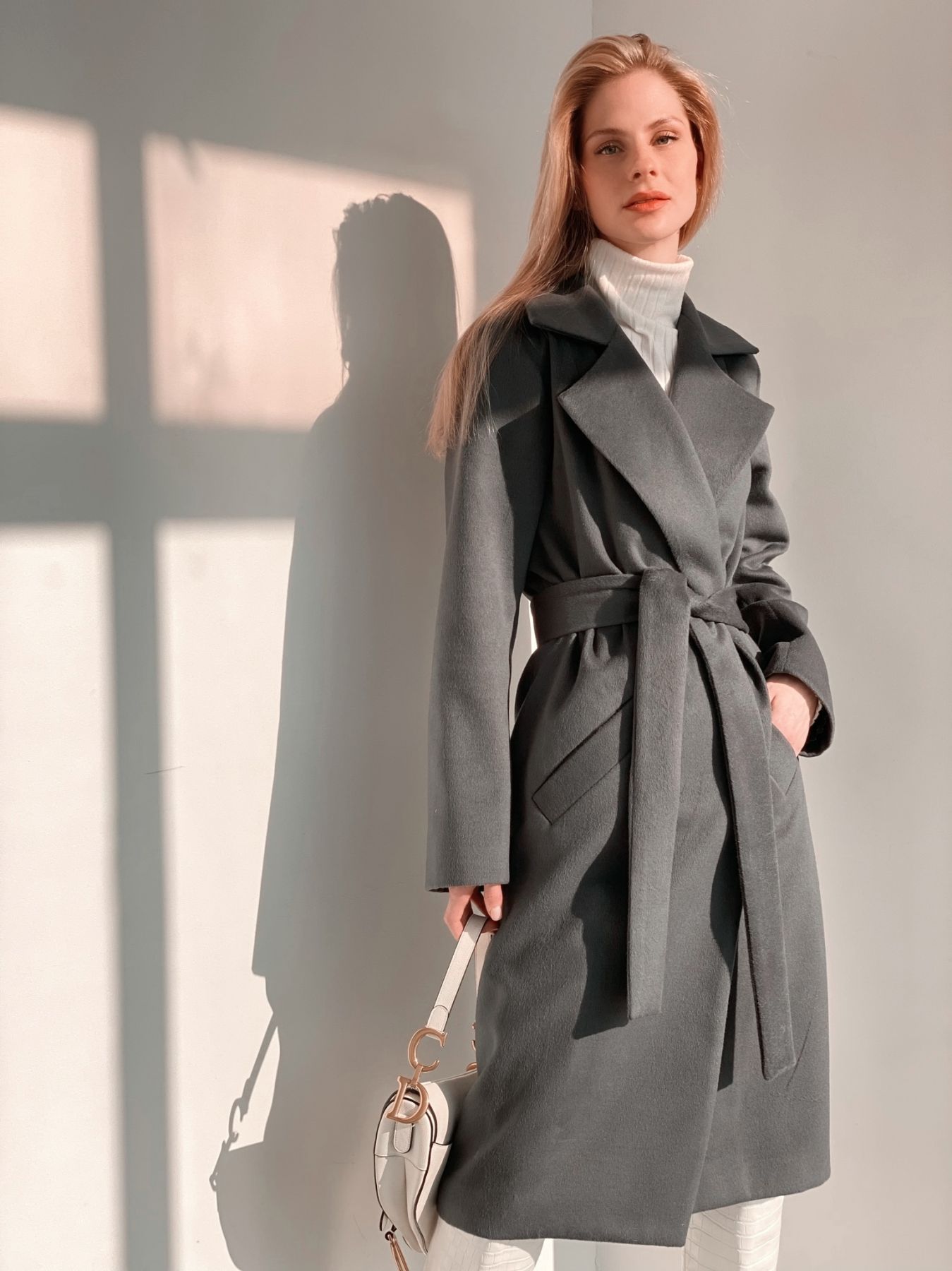 6210 Тренч в стиле "оверсайз" серо-бежевый