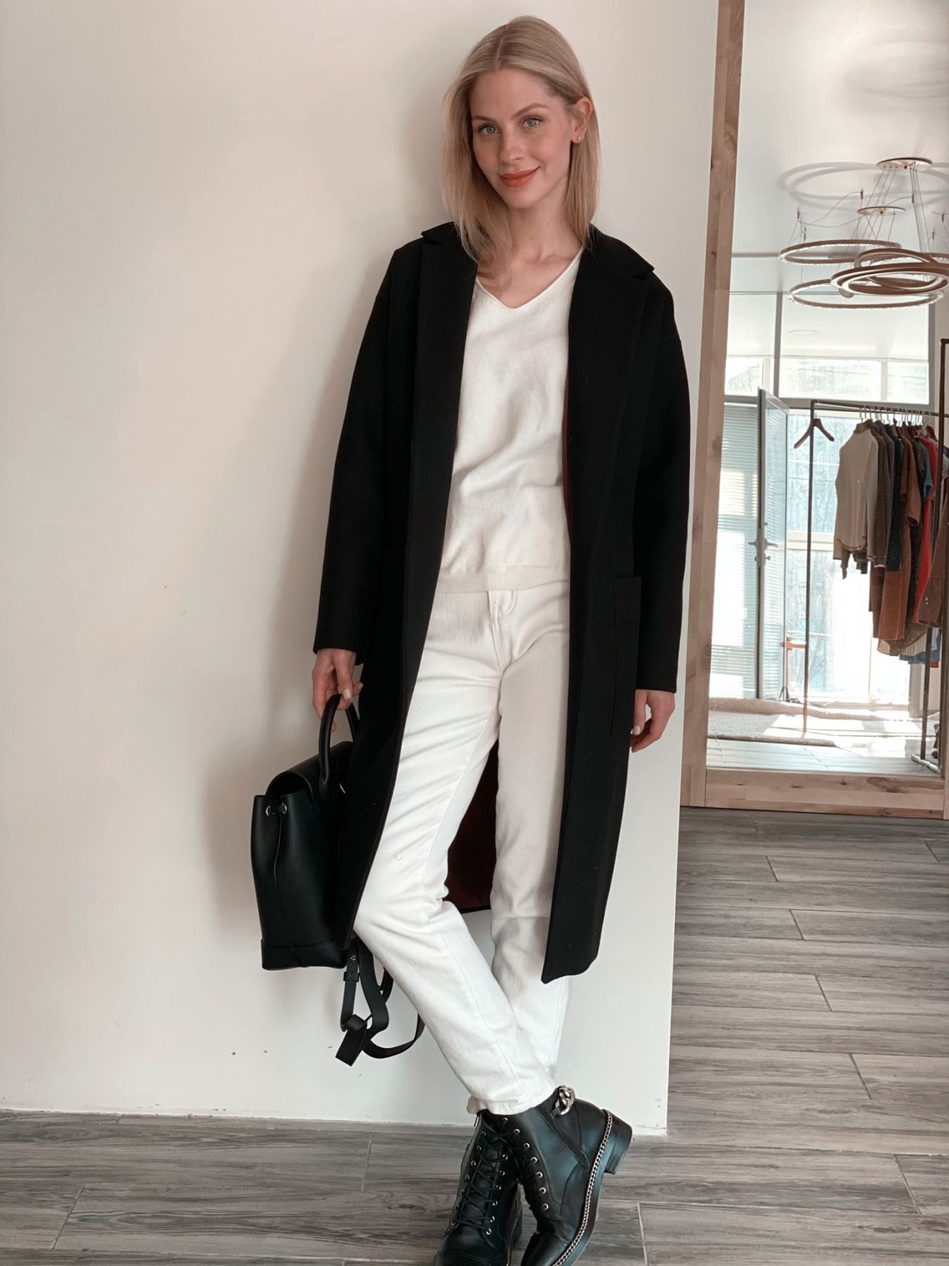 3813 Пальто-кокон чёрного цвета с накладными карманами