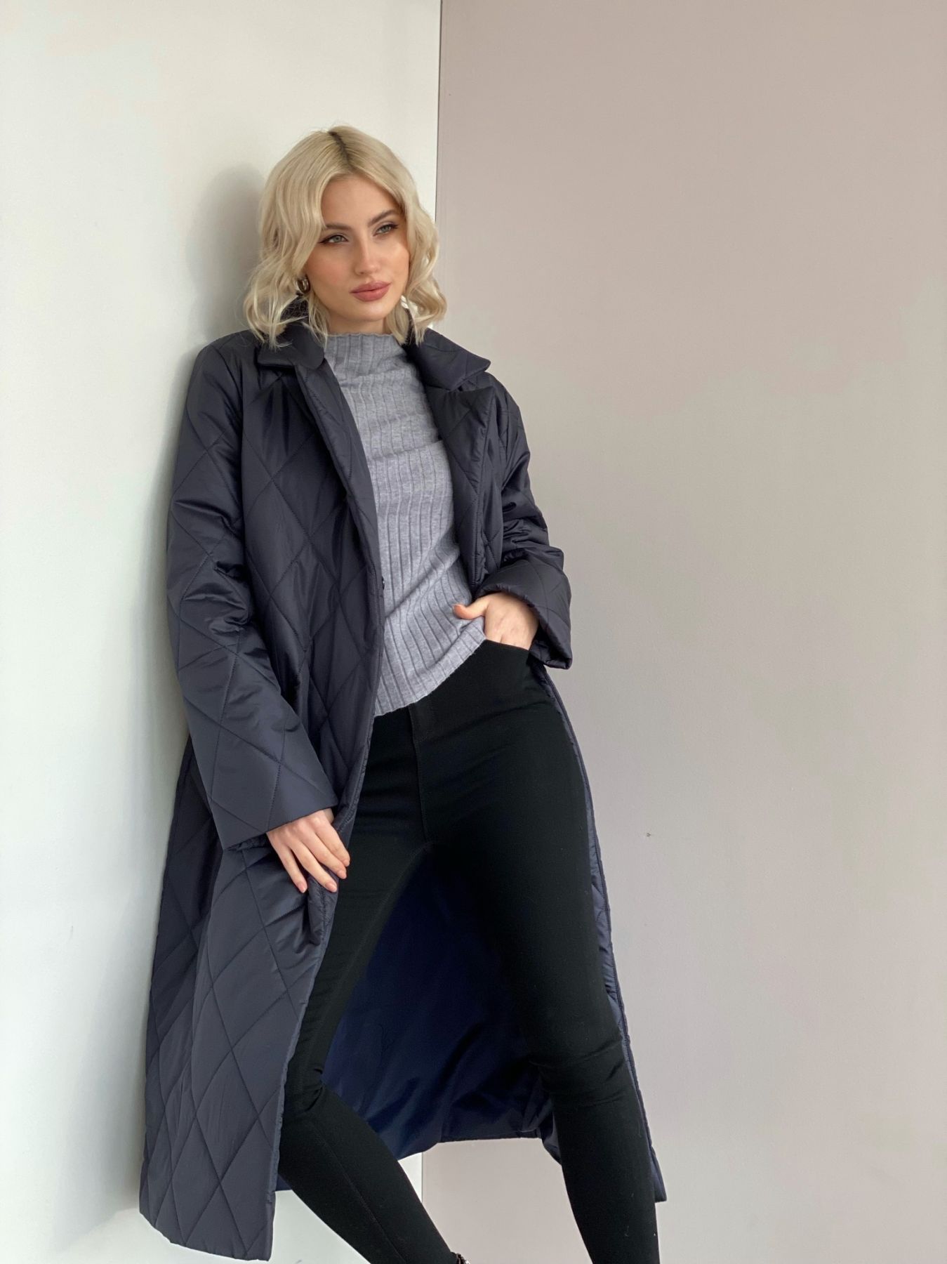 6002 Стеганое демисезонное пальто в цвете антрацит