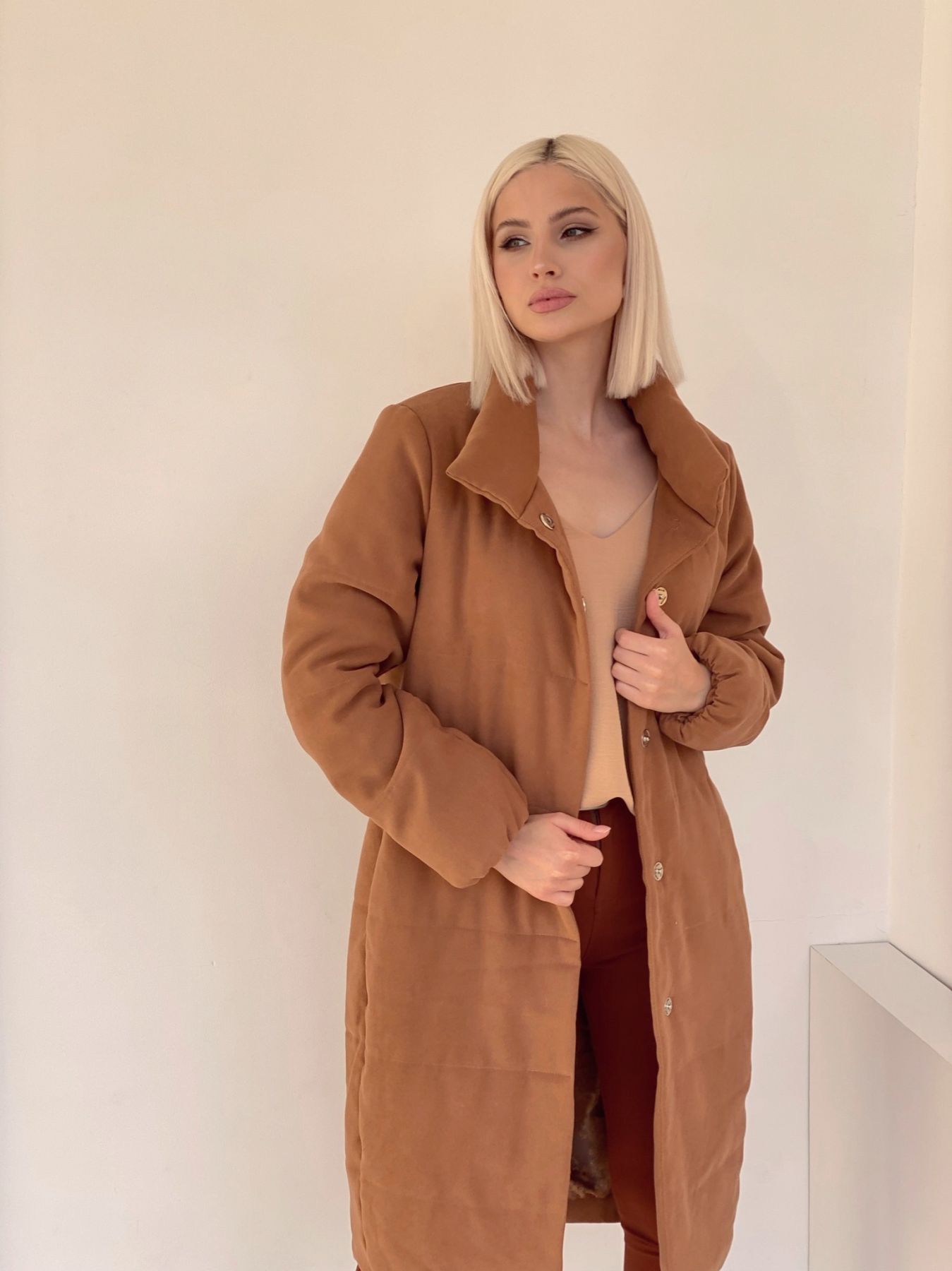 4855 Пальто утеплённое стёганое Premium "шоколад"
