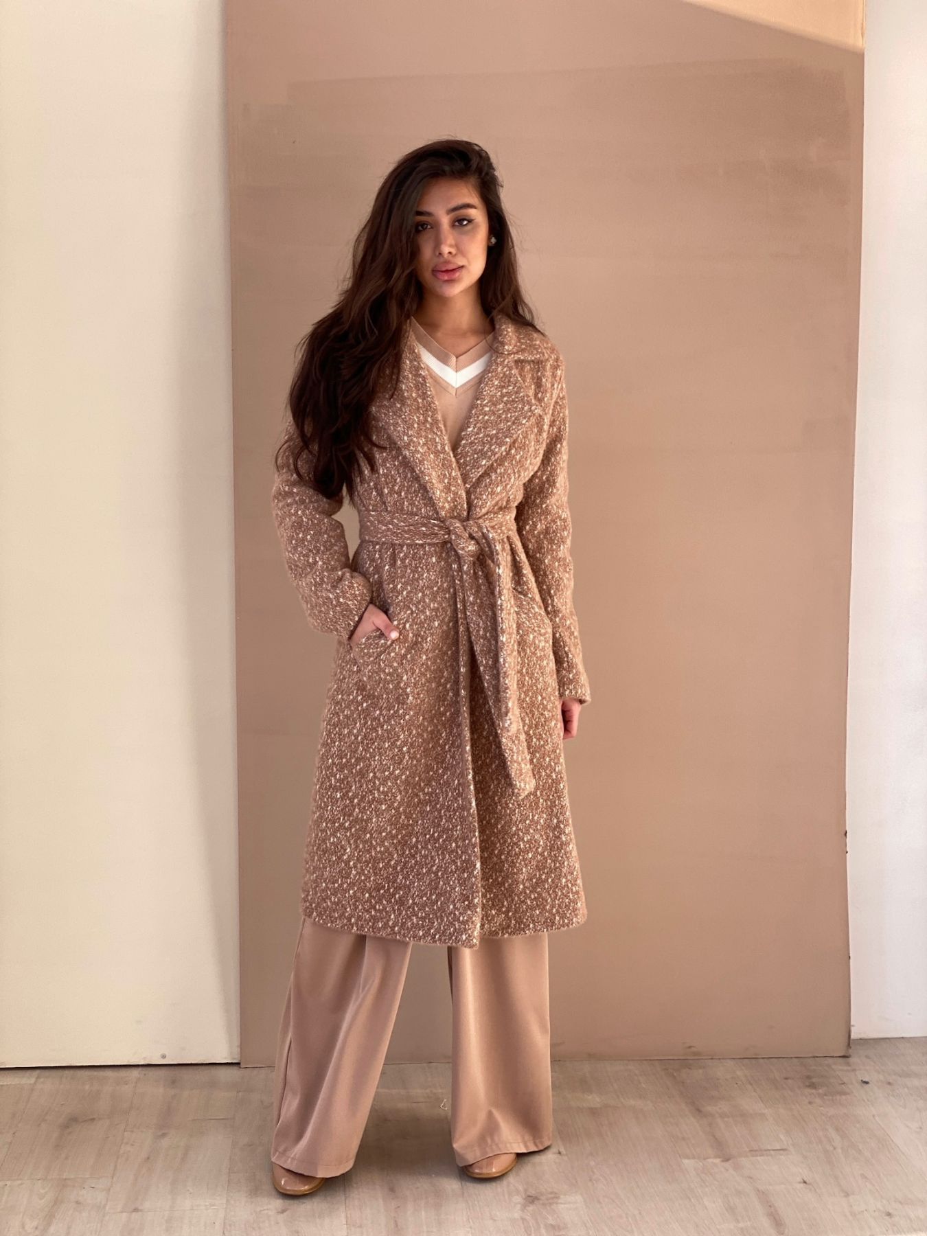 5693 Пальто классическое из шерсти коричневое в крапинку