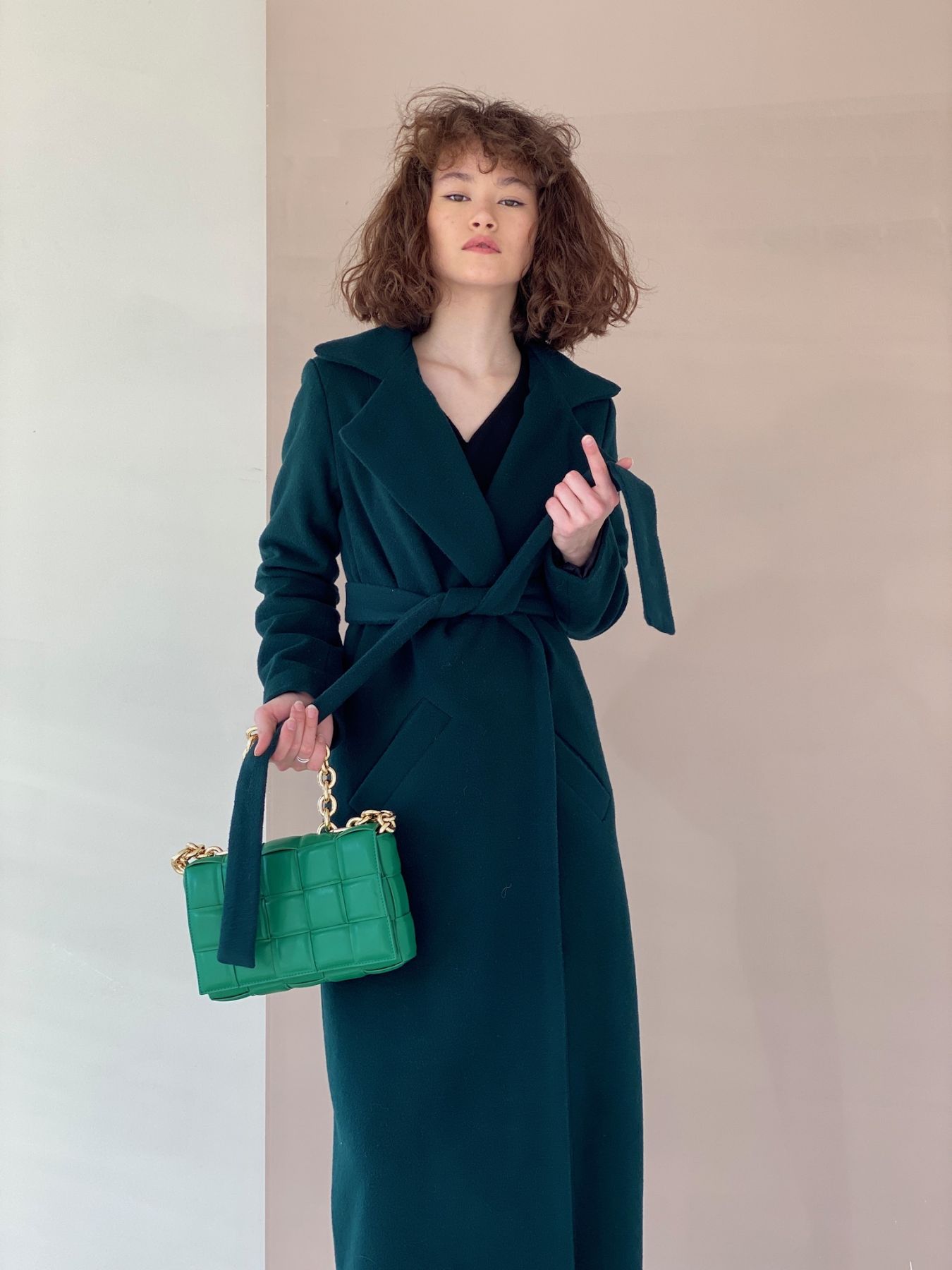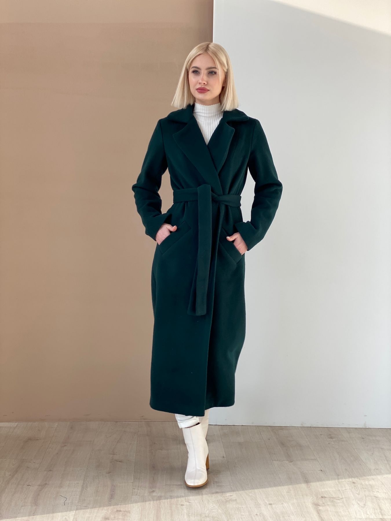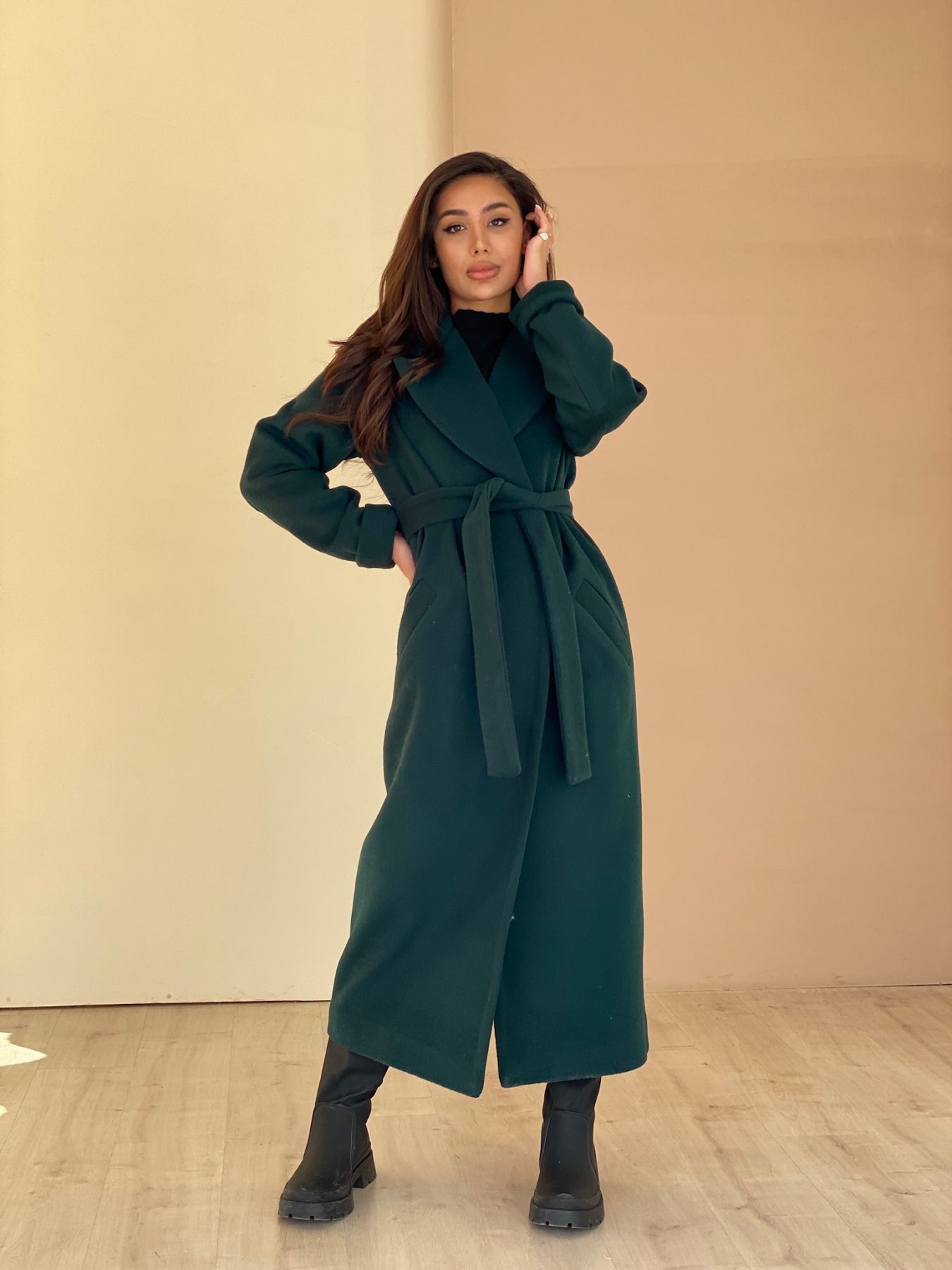 5702 Пальто классическое удлинённое тёмно-зелёное