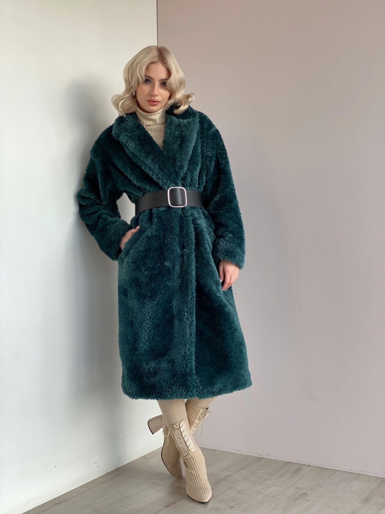 5763 Пальто Дива удлинённое тёмно-зелёное