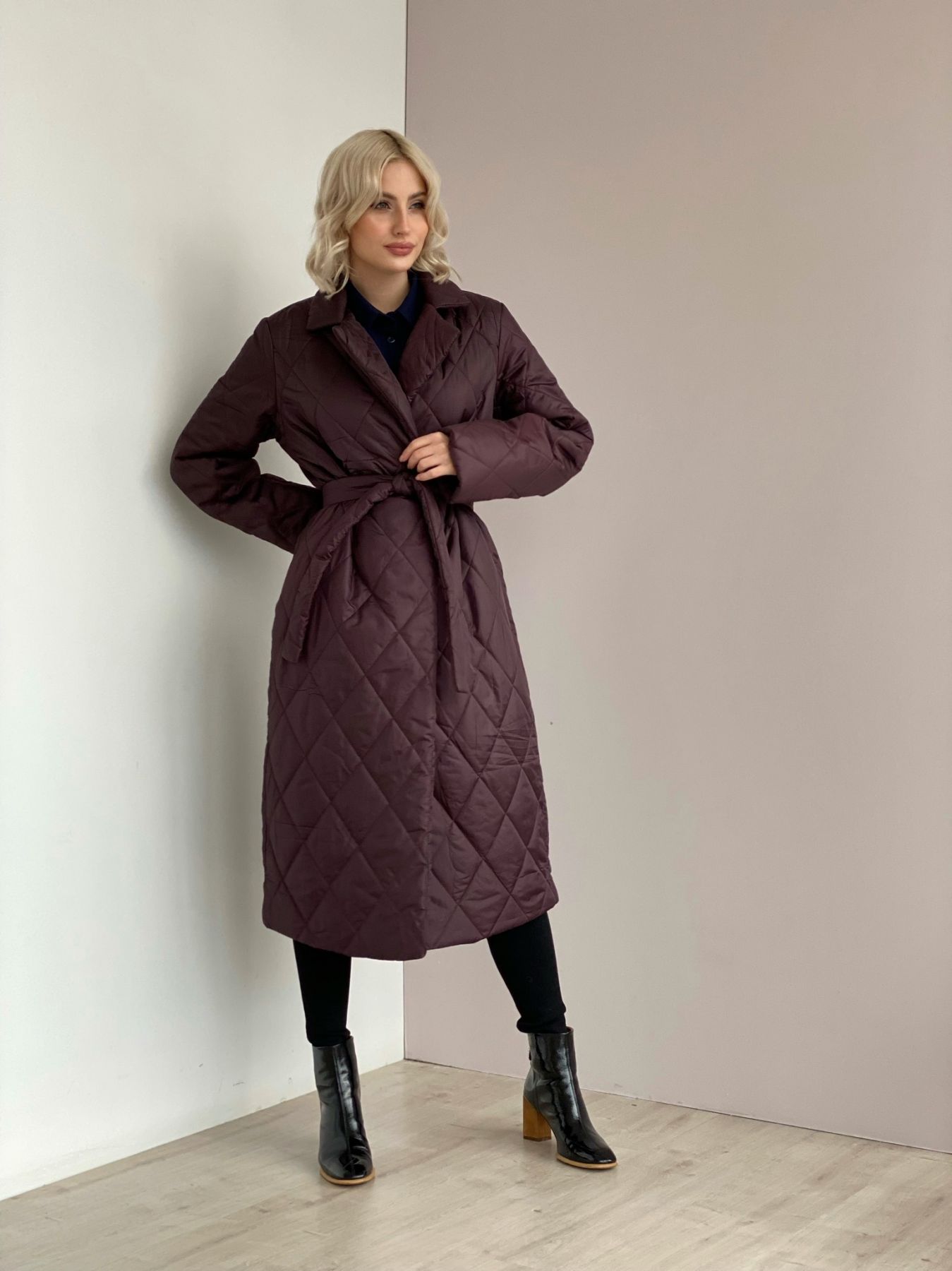 6003 Стеганое демисезонное пальто в цвете "бургунди"