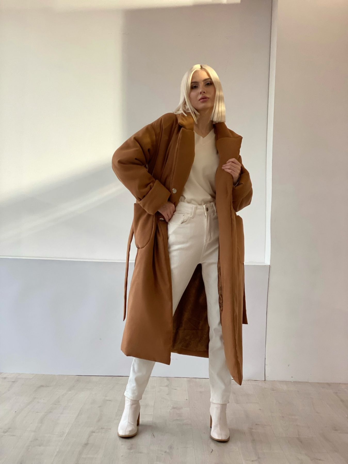4850 Пальто-одеяло на альполюксе в цвете camel