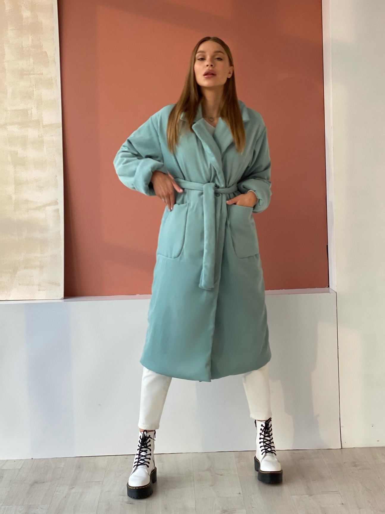 4851 Пальто-одеяло на альполюксе "изумруд"