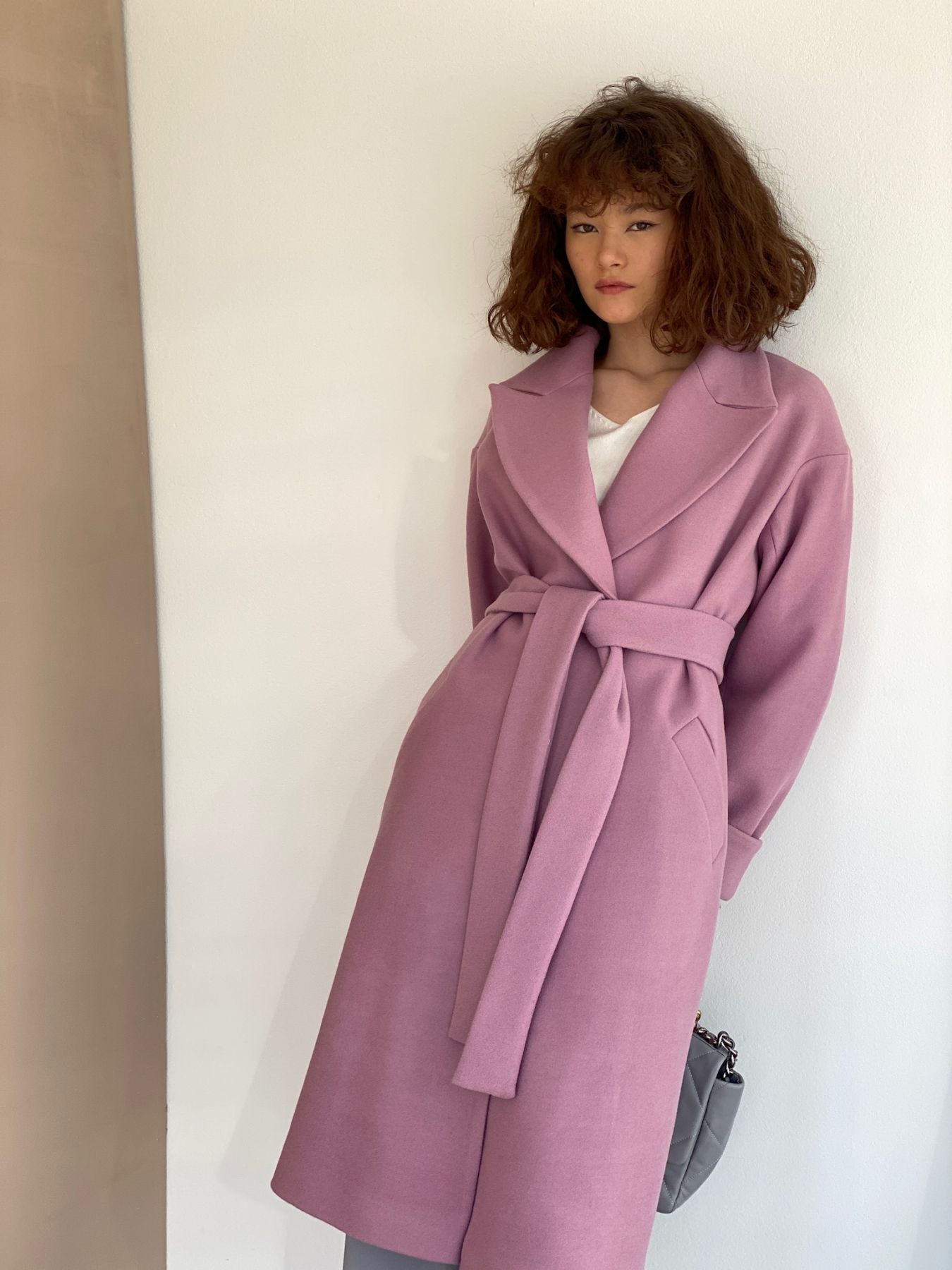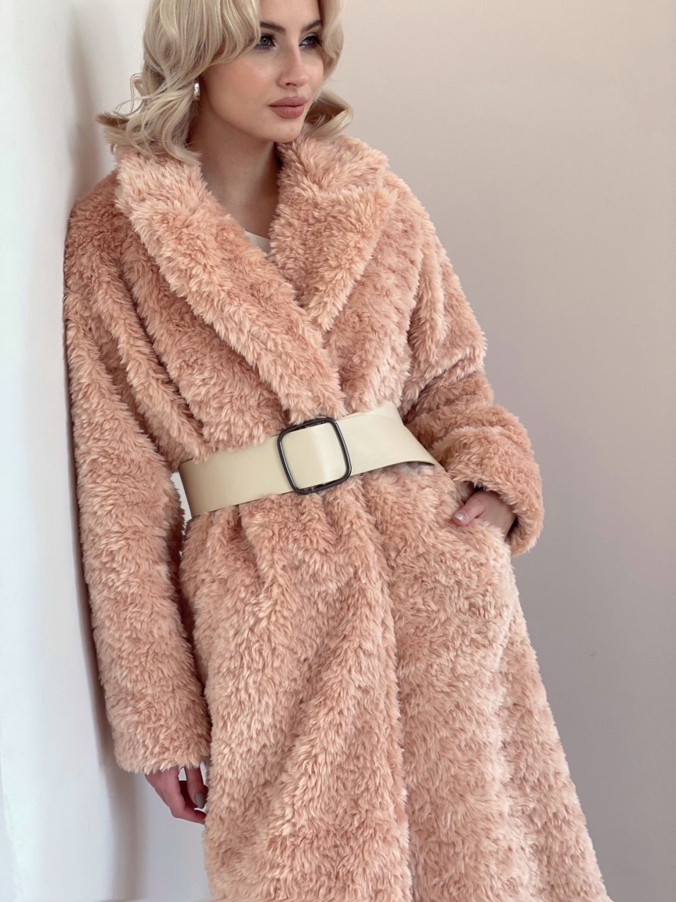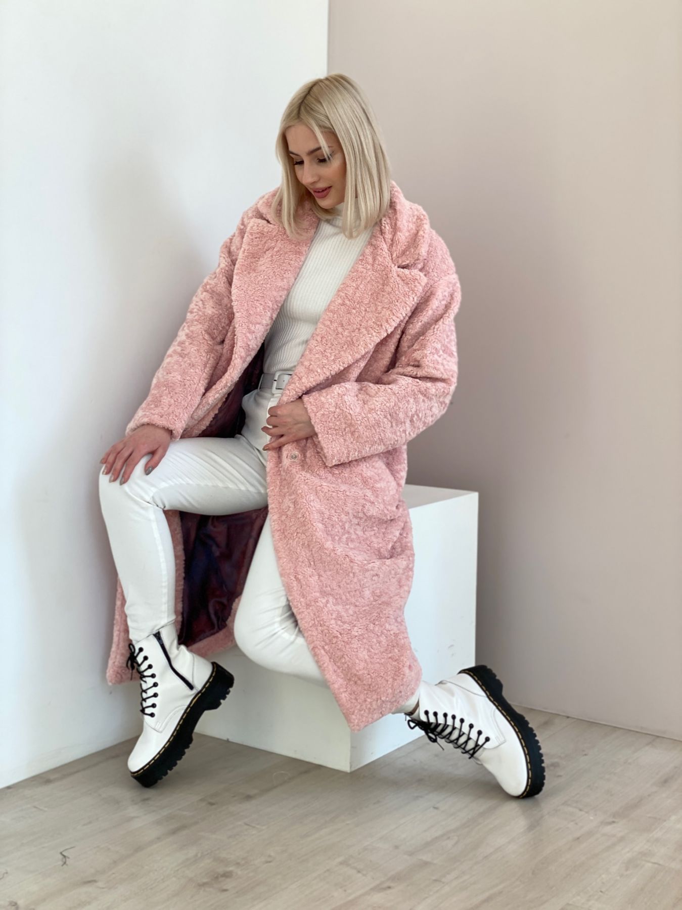 6025 Шубка длинная в цвете "розовый жемчуг"