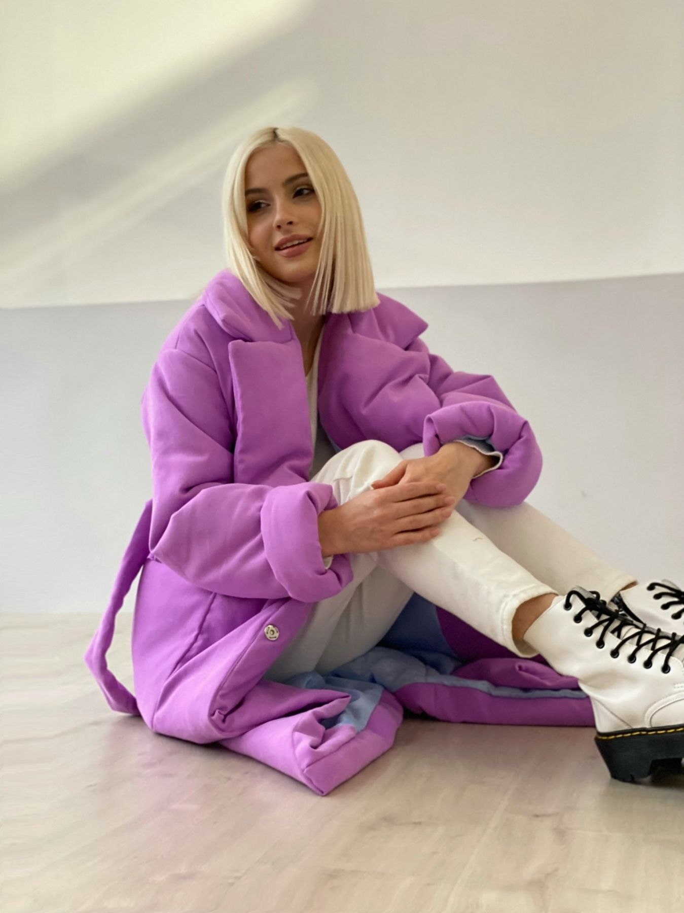 4849 Пальто-одеяло на альполюксе в цвете "фуксия"