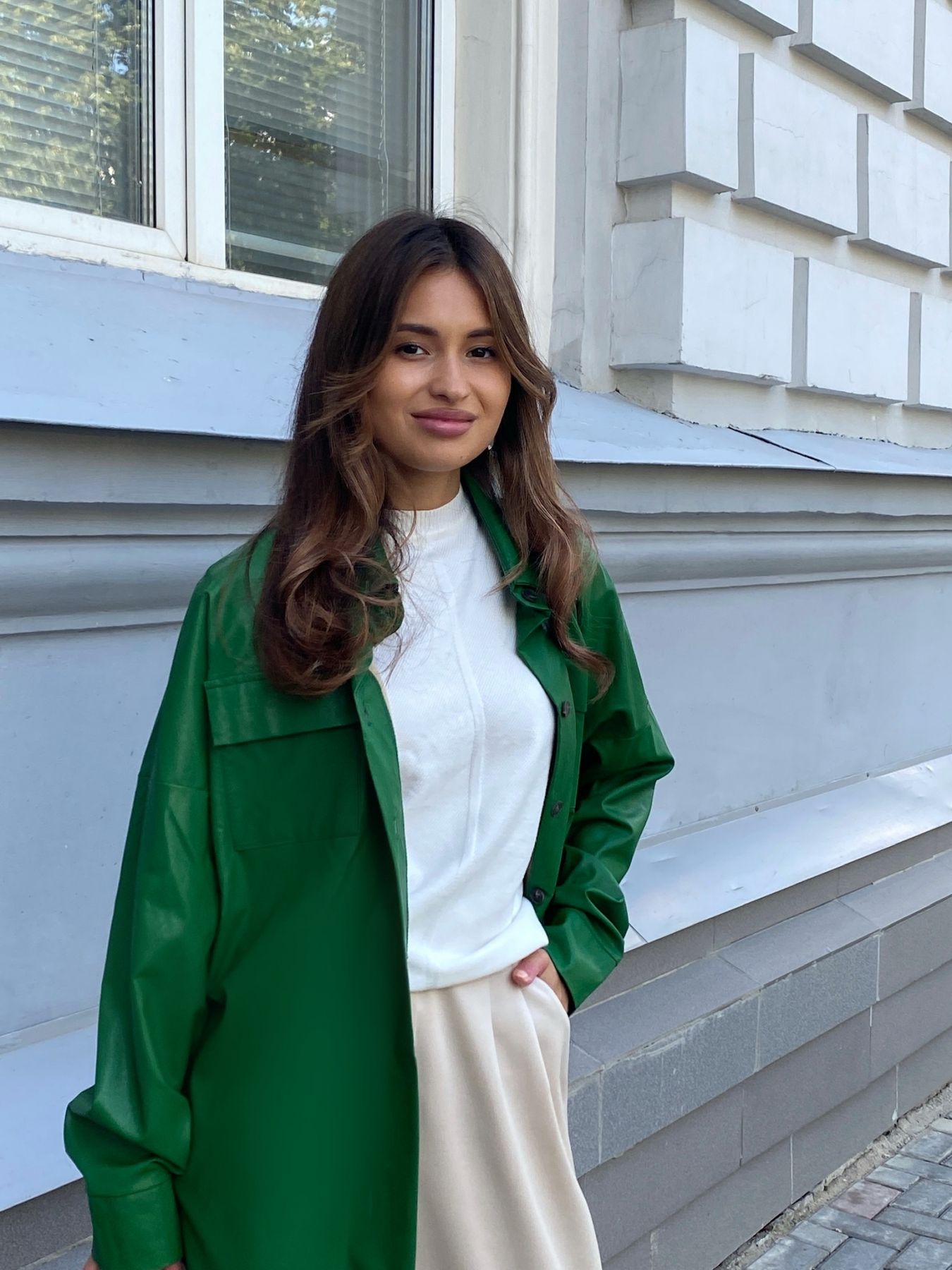 5891 Рубашка из экокожи зелёная