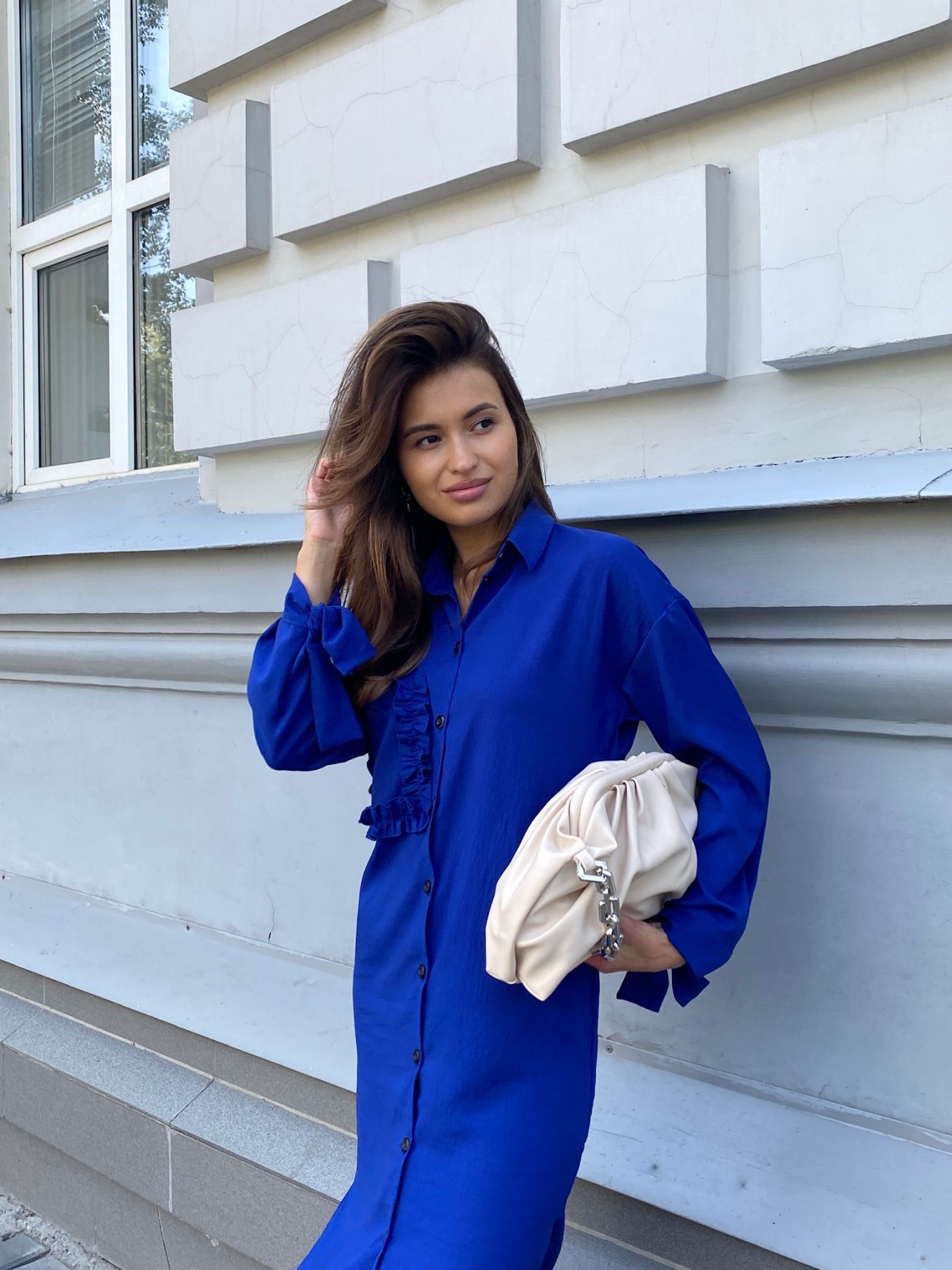 6931 Платье-рубашка с объёмными рукавами голубое
