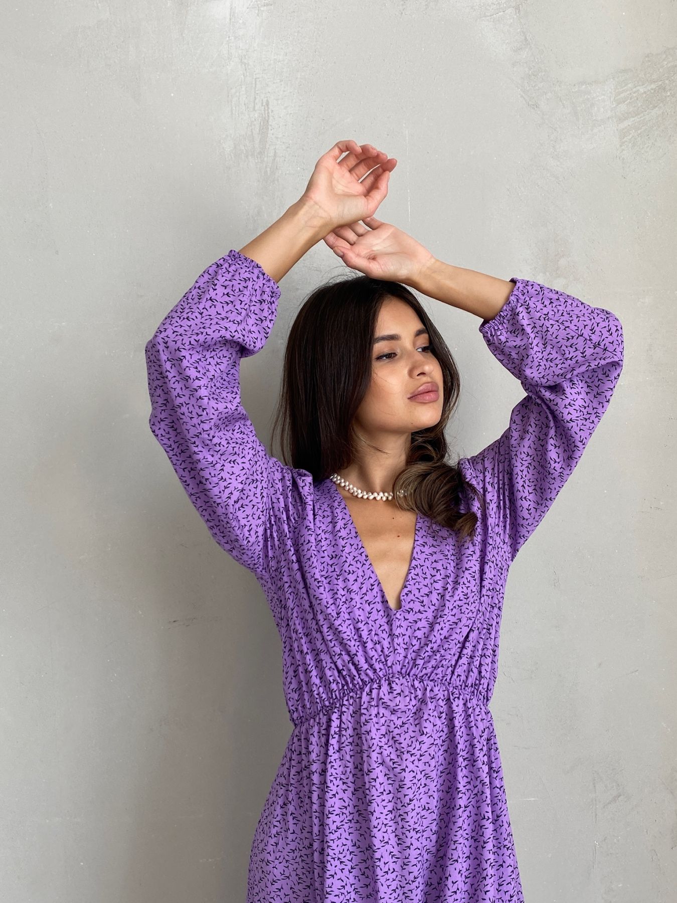 6947 Платье с завязками на спине сиреневое с мелким принтом