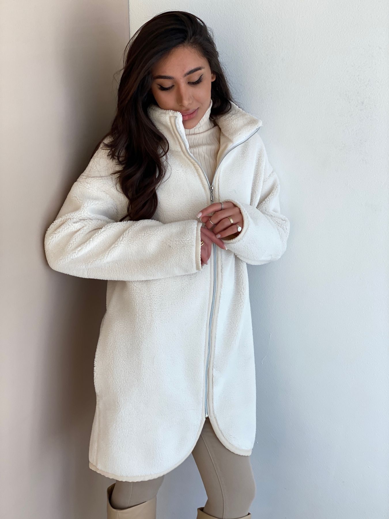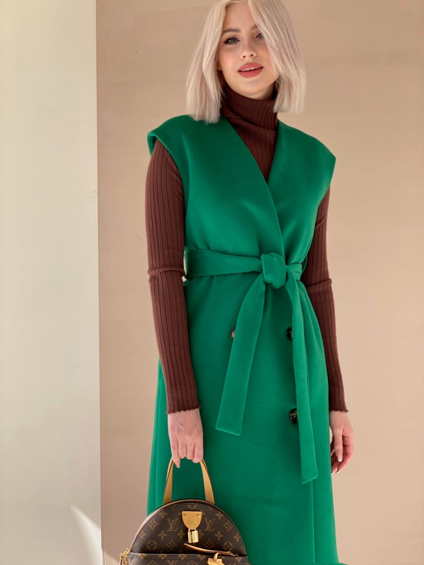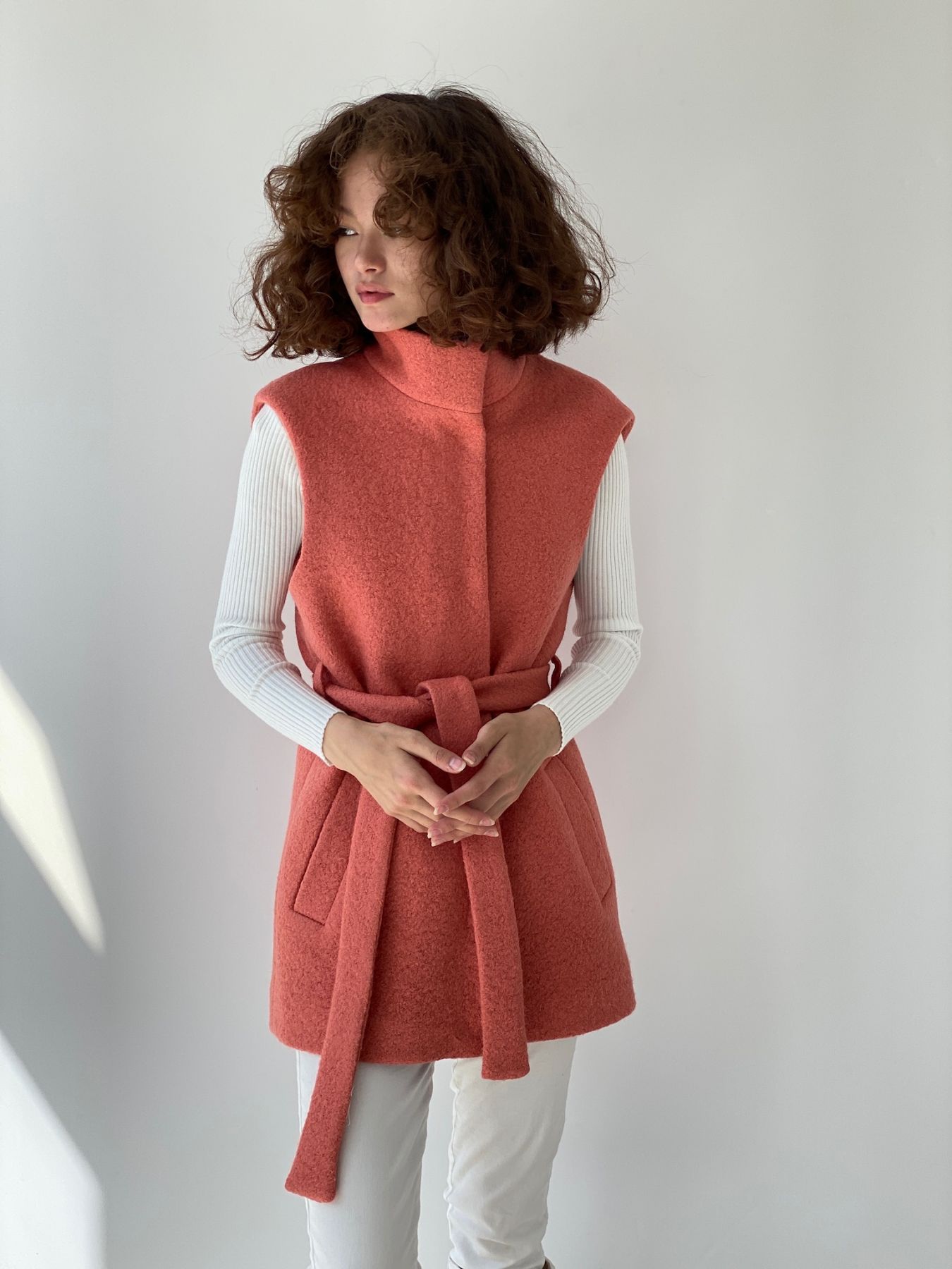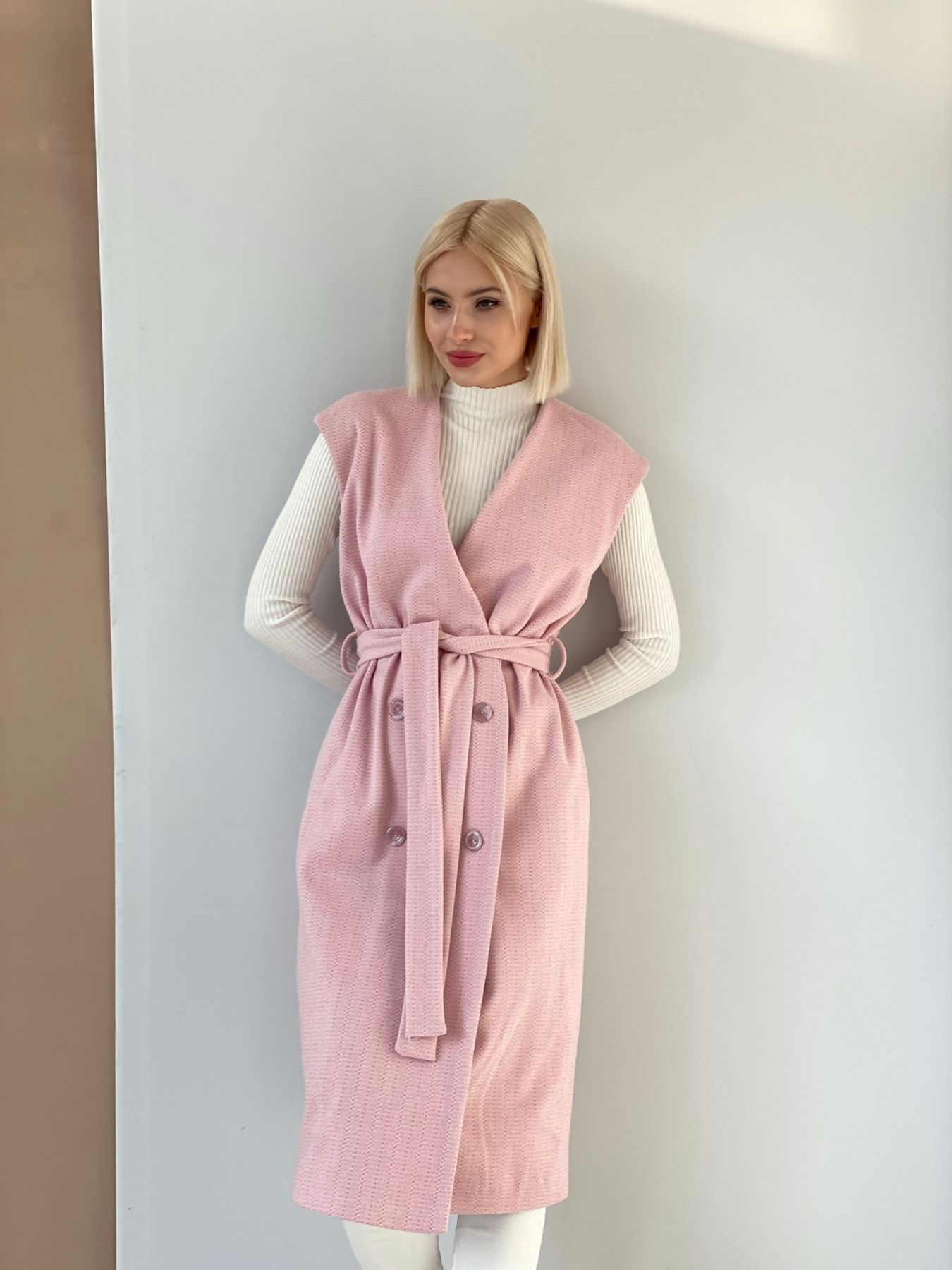 5700 Жилет-пальто из шерсти в пудровую полосочку-ёлочку