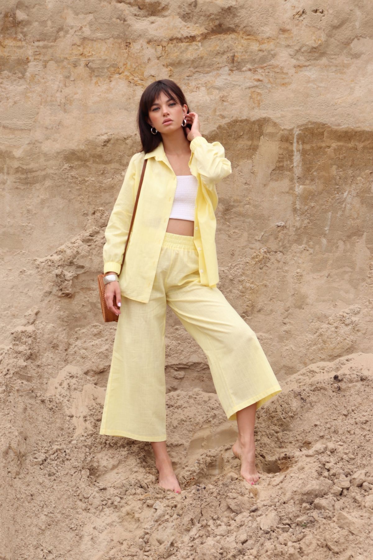 7010 Костюм в пижамном стиле с кюлотами лимонный