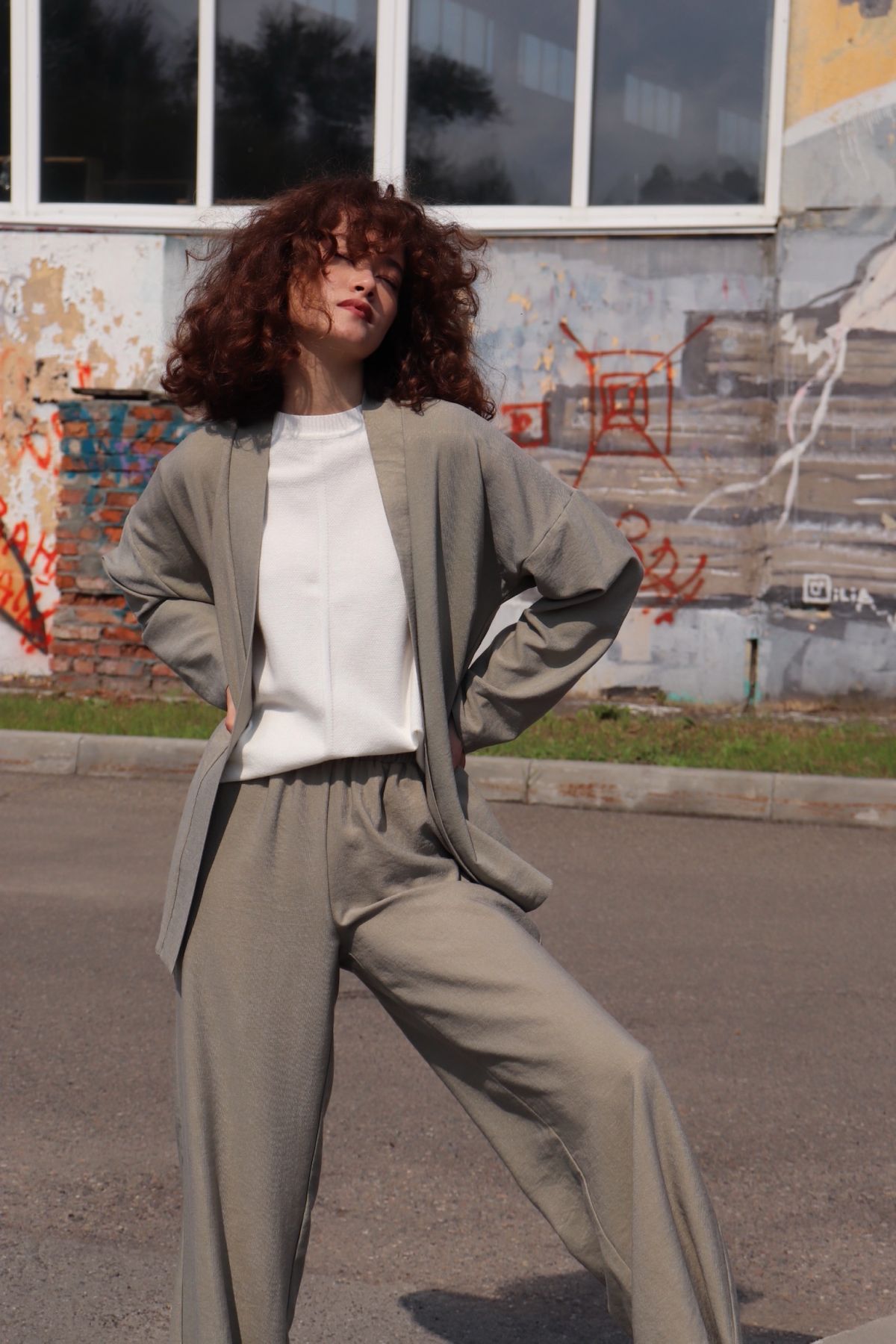 7043 Костюм из кимоно и брюк-палаццо в цвете "корица"