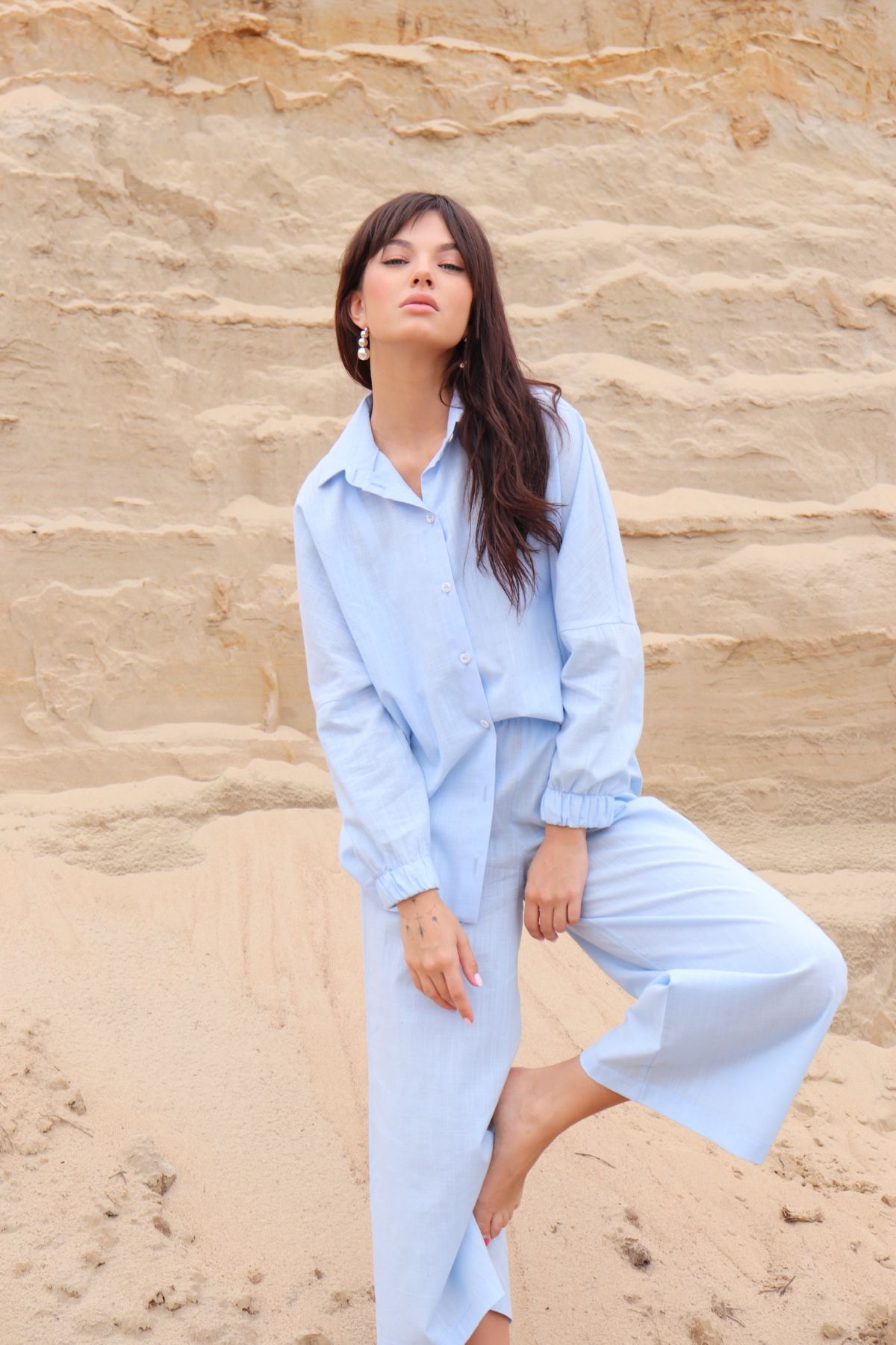 7008 Костюм в пижамном стиле с кюлотами голубой