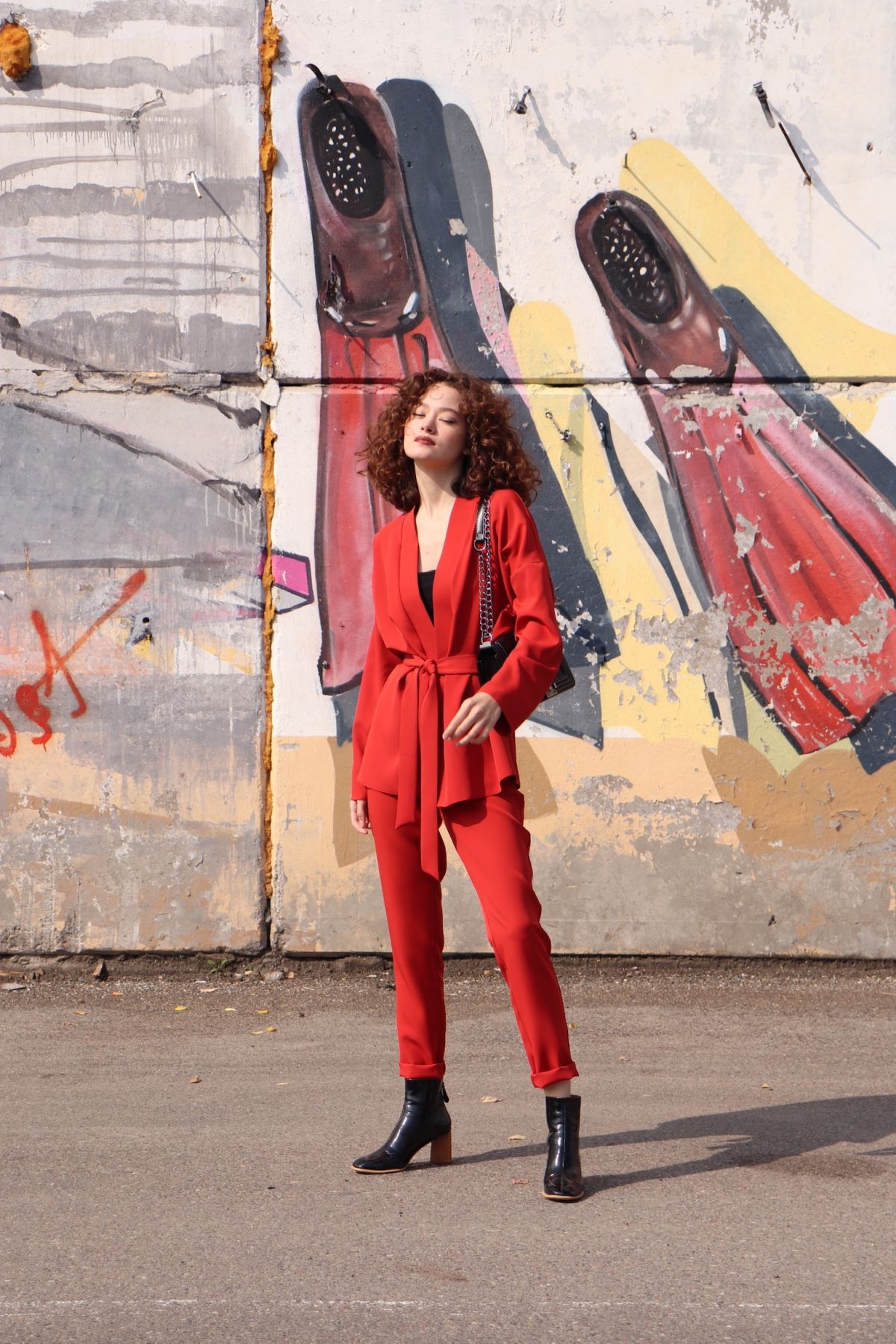 7031 Костюм из кимоно и брюк-дудочек красно-оранжевый