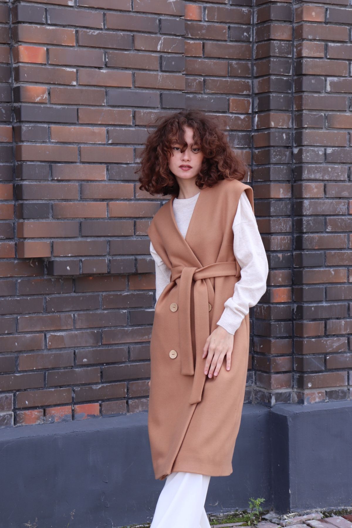 6220 Жилет-пальто в тёплом бежевом