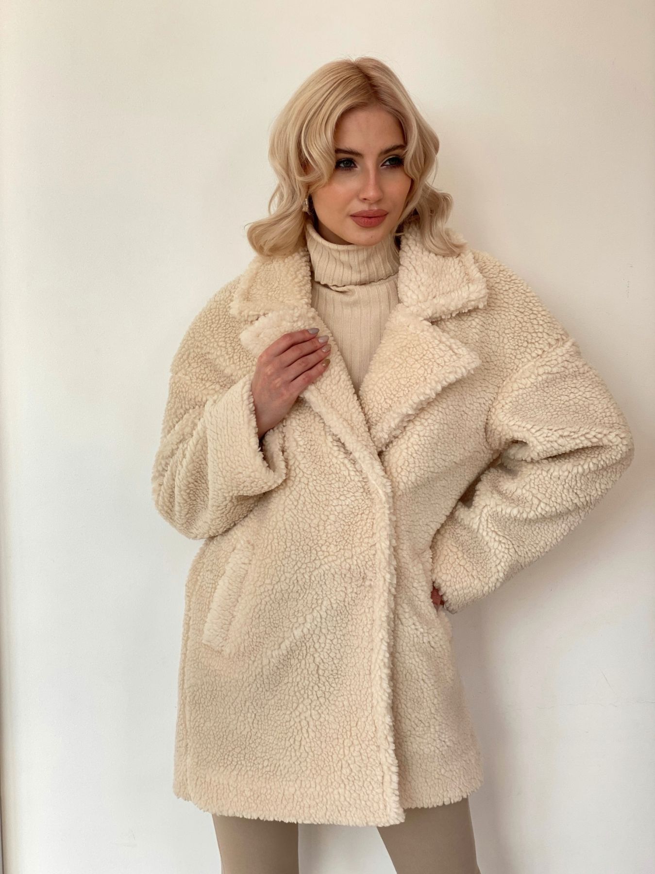 6019 Шубка короткая светло-бежевая