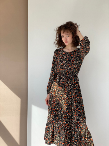 5421 Платье чёрное с букетиками