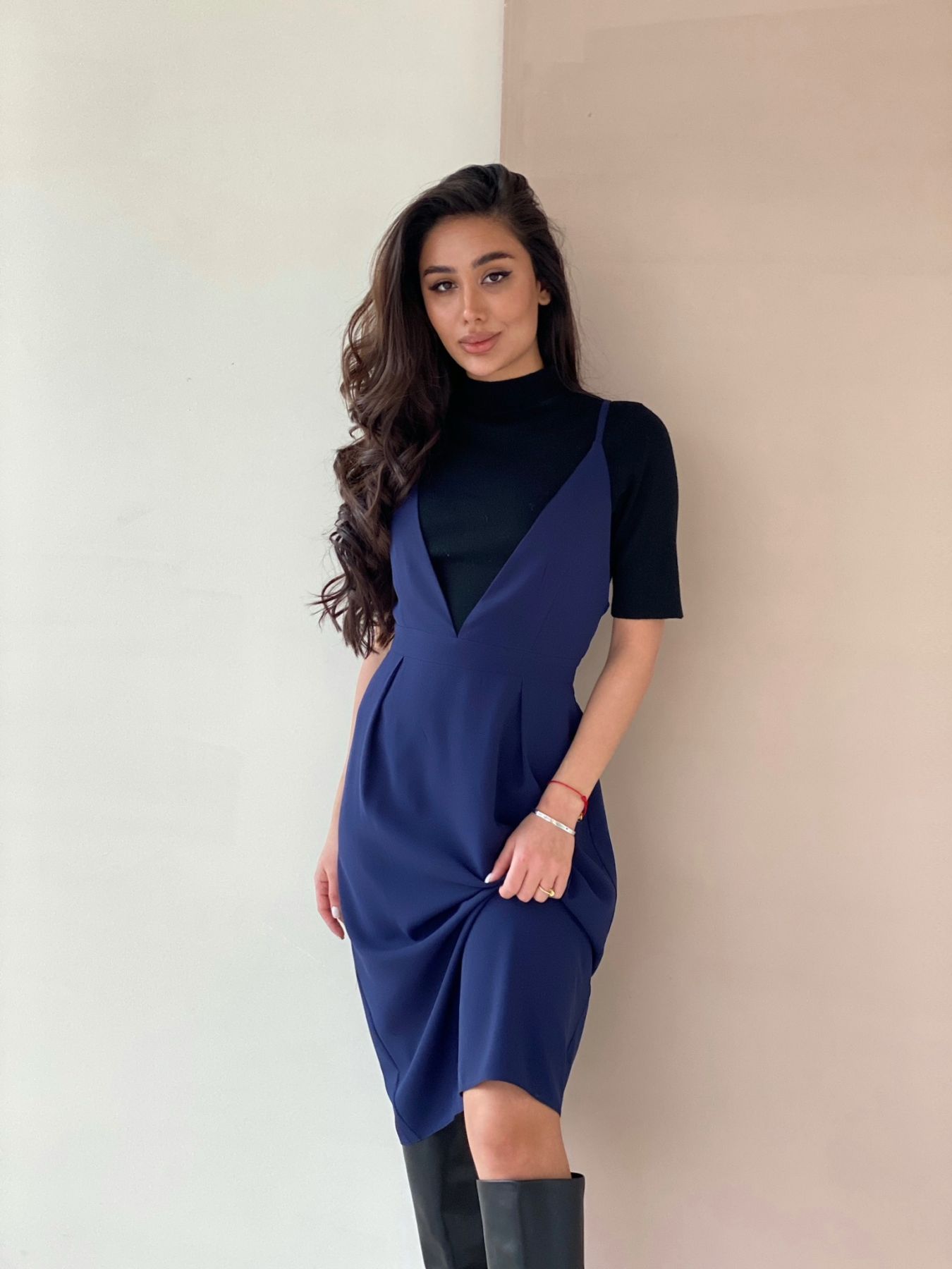 3647 Платье с перекрутами серое в горох (на подкладе)