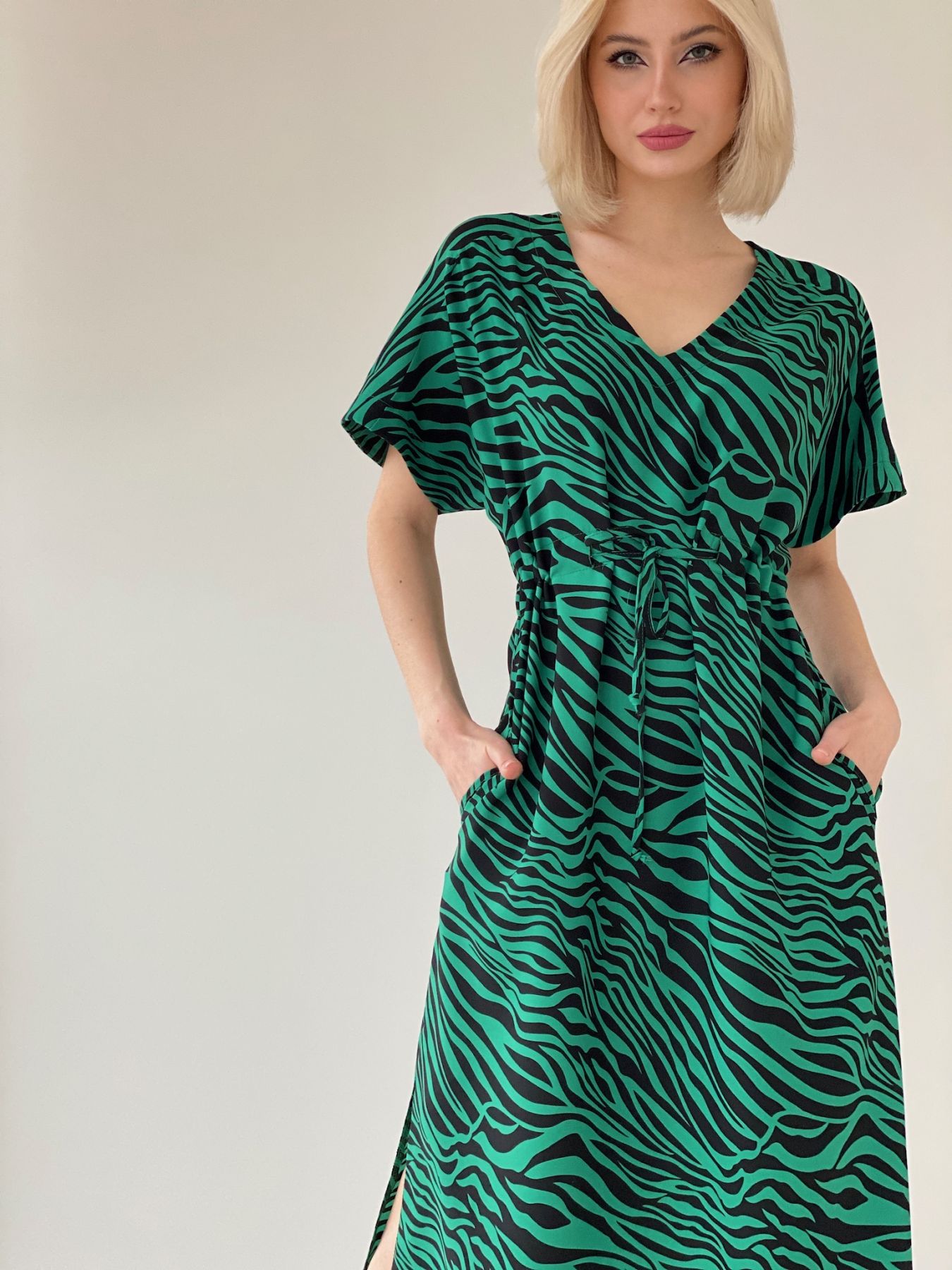 6166 Платье-"оверсайз" с кулиской "зелёная зебра"