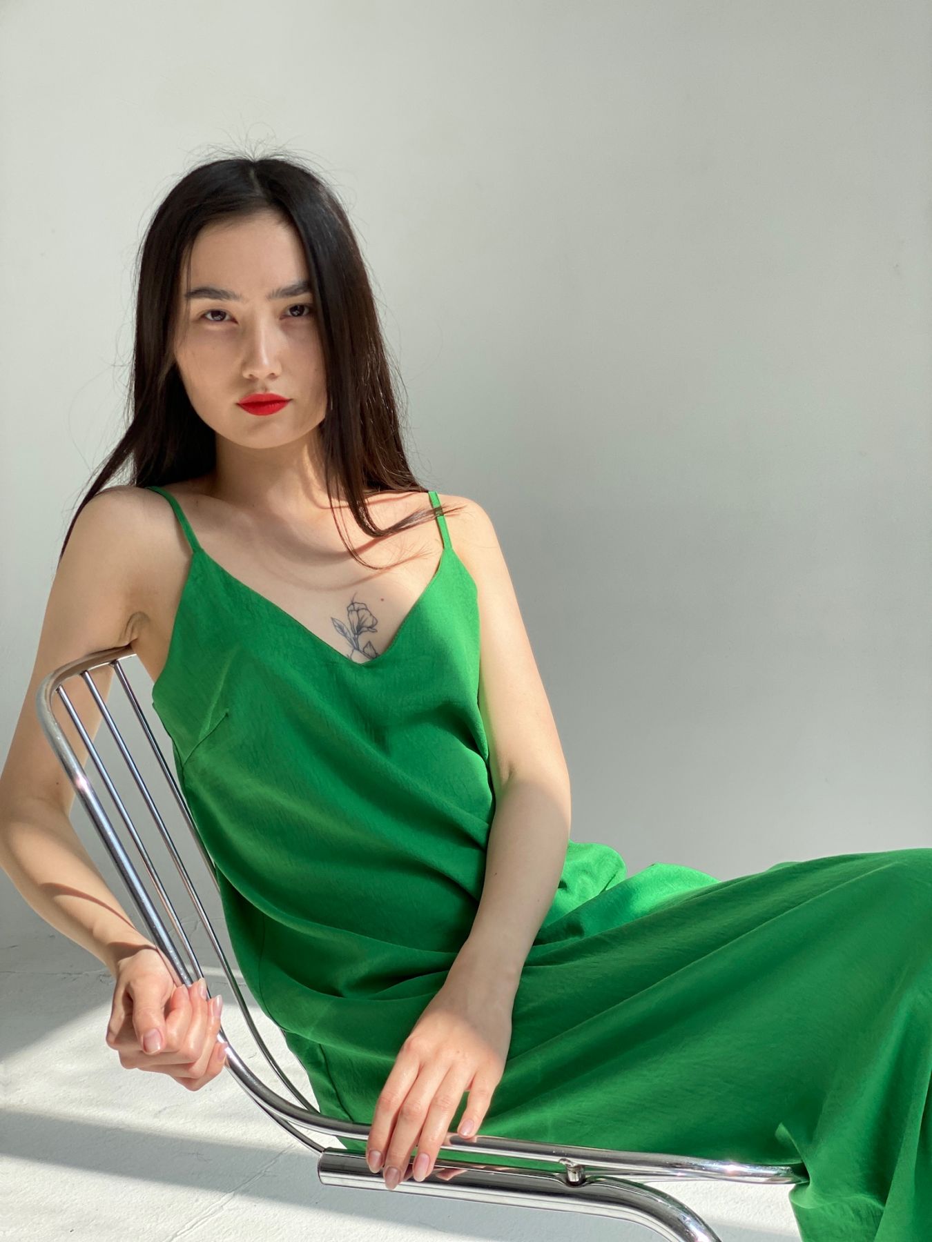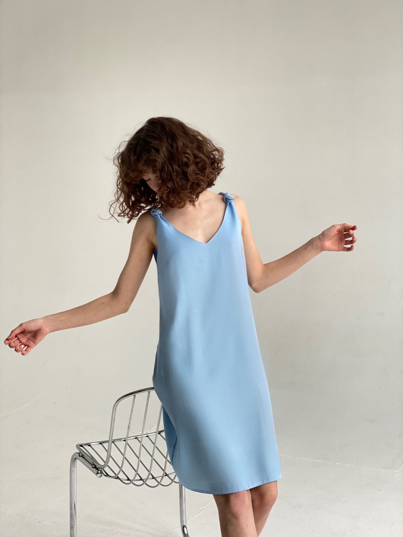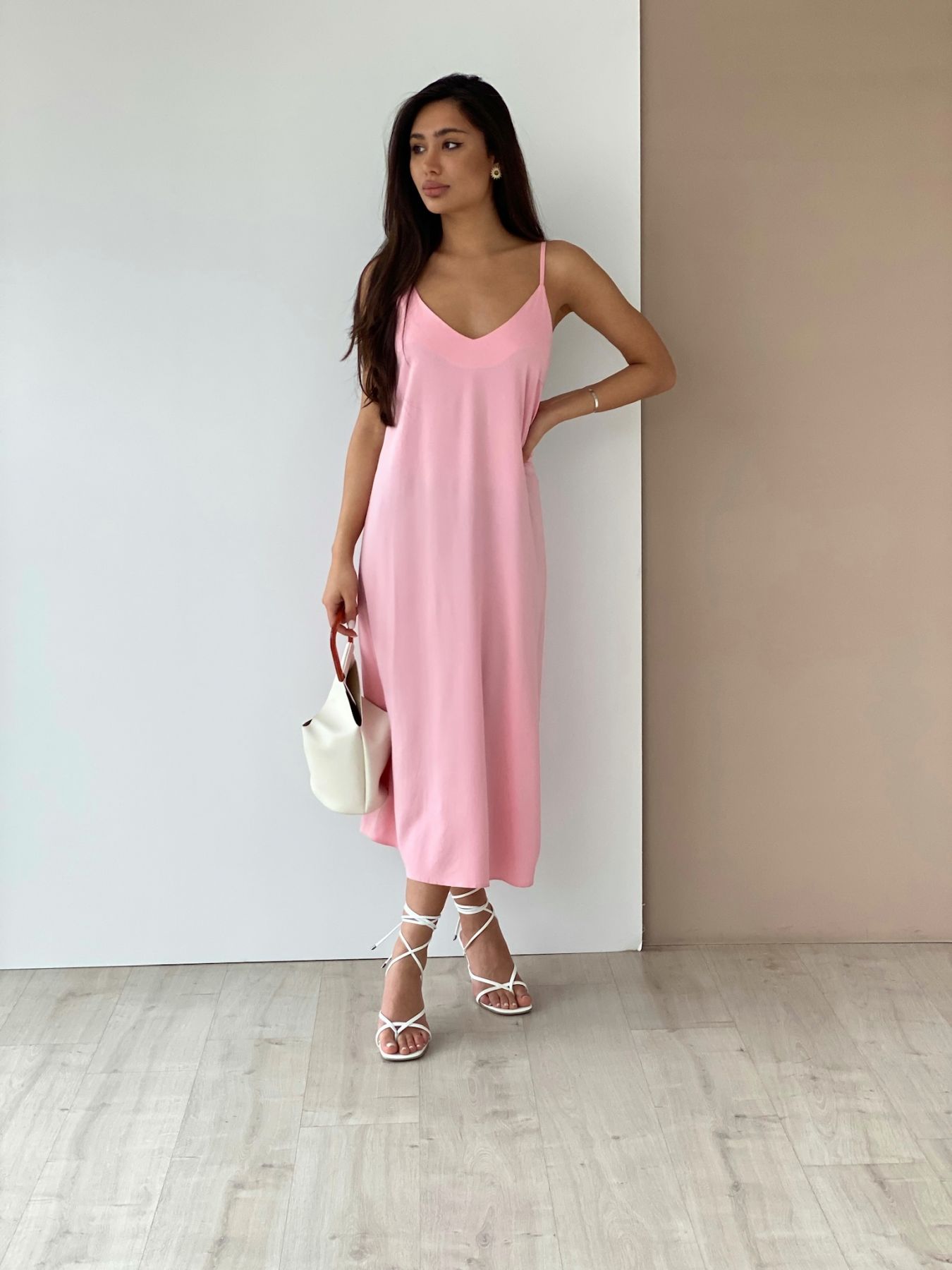 6364 Шёлковое платье с узлами на бретелях в жемчужно-розовом