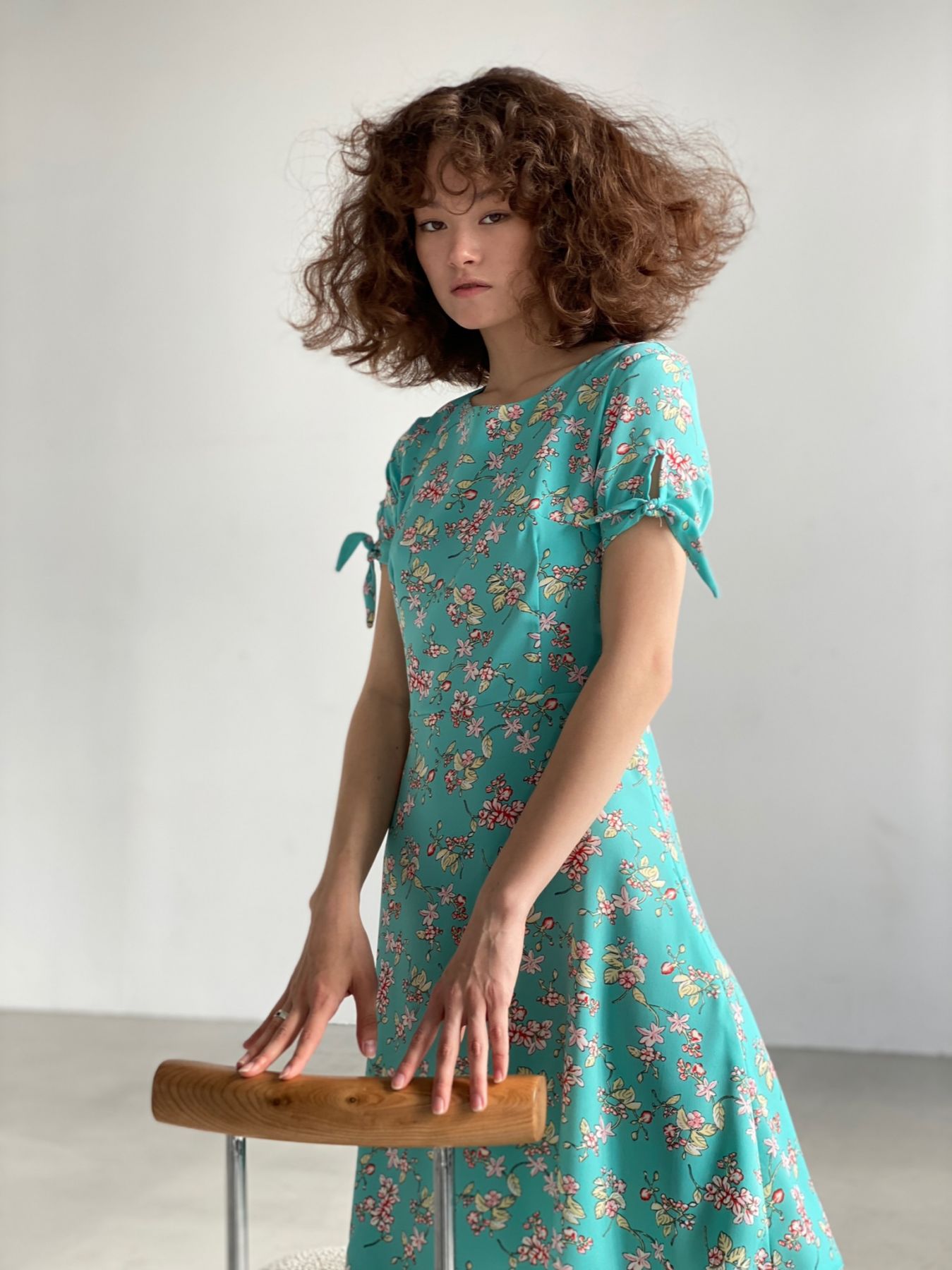 6359 Платье с завязками на рукавах "Тиффани" в цветок