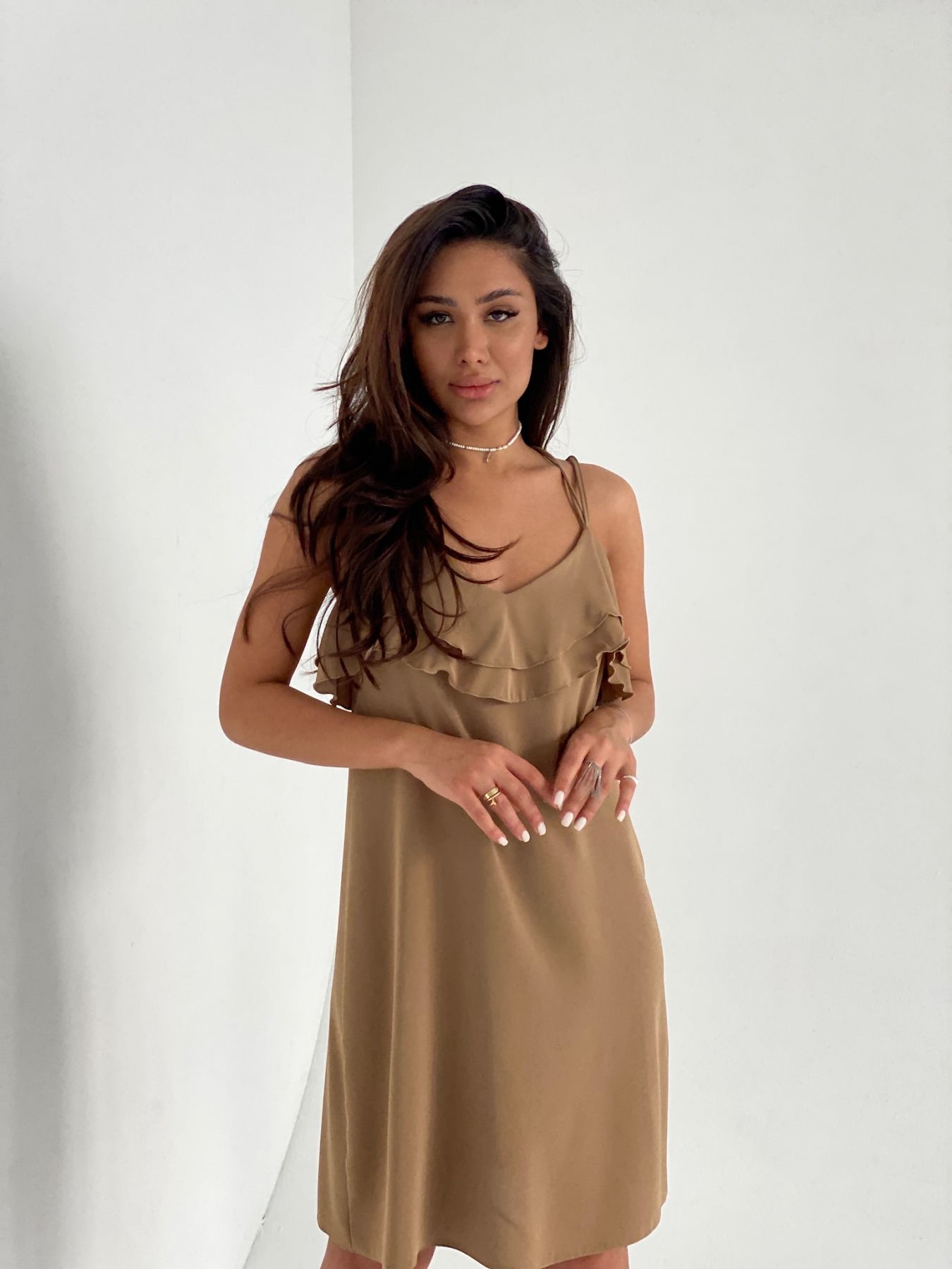 6388 Платье на тонких бретелях "капучино"