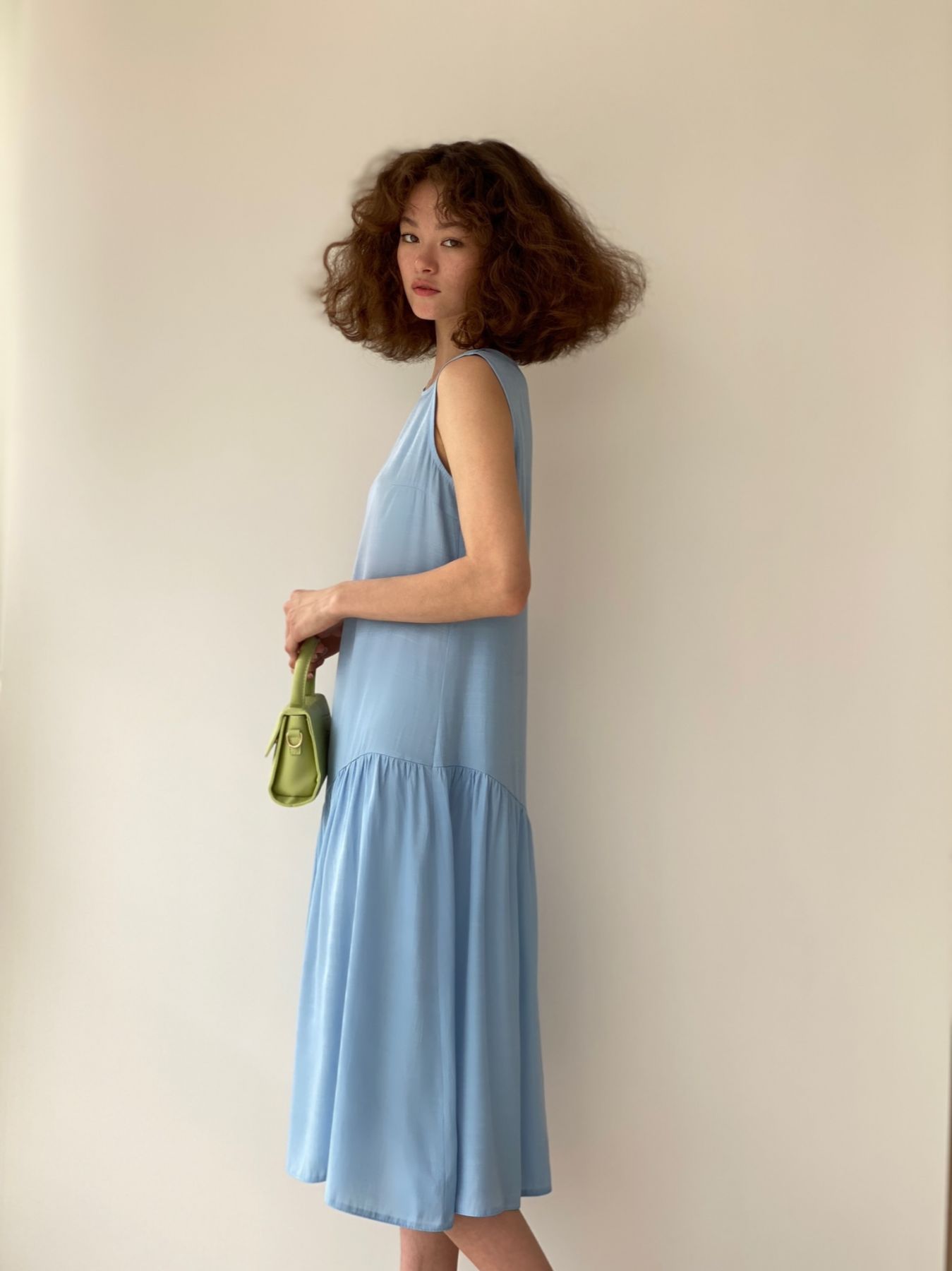 6335 Платье с асимметричным воланом нежно-голубое