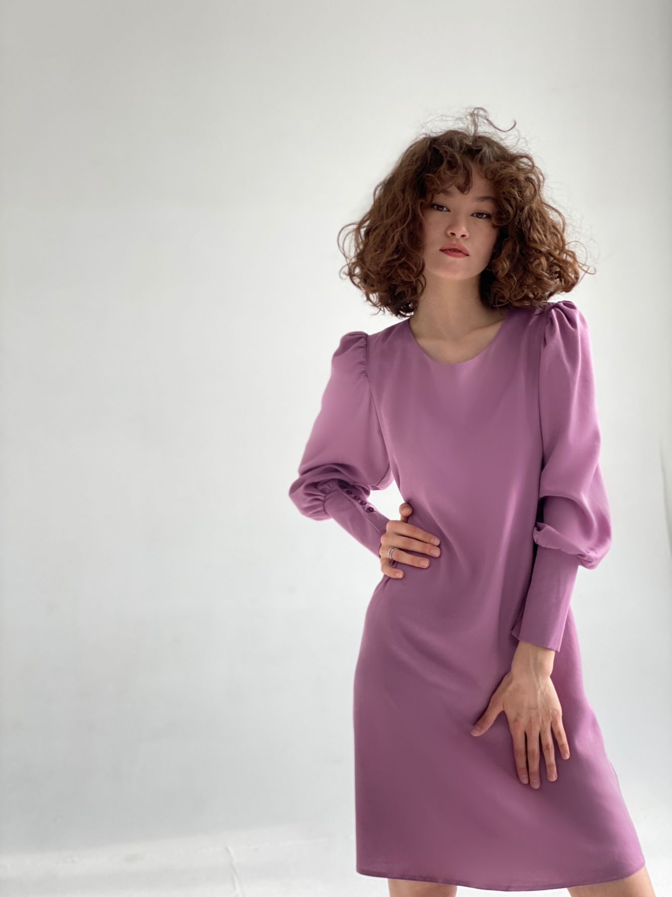 6394 Платье с объёмными рукавами в пыльном сиреневом